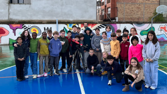 També, hem sortit al pati de l’escola per fer una observació del Sol amb el telescopi.