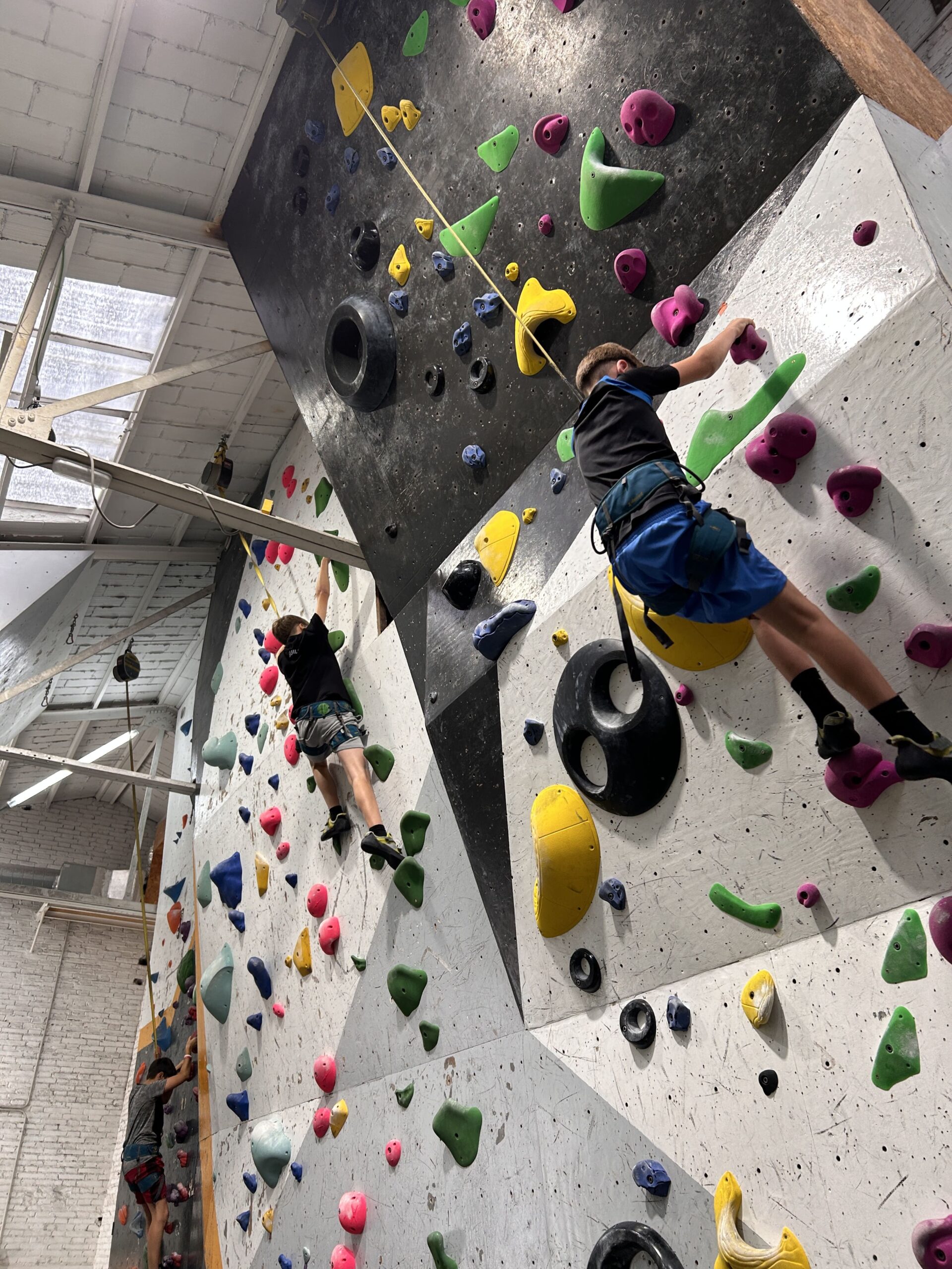 Per enllestir el curs, des de l’àrea d’educació física, hem anat a passar el matí al Pati Vertical, un rocòdrom de Manresa. Hem agafat l’autobús de línia a Sant Joan i hem anat fins a Manresa. Un cop allà ens hem desplaçat fins al Pati Vertical i hem gaudit escalant en dos formats diferents: amb autoasseguradors i boulder o escalada en bloc.