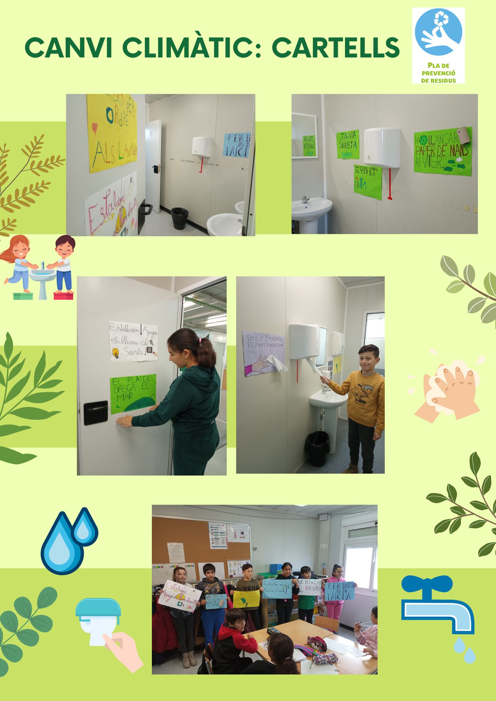 Han fet uns cartells per millorar el medi ambient i han aportat el seu “granet de sorra” . Els cartells estan destinats a sensibilitzar sobre el bon ús de l’aigua i el paper als lavabos de l’escola.