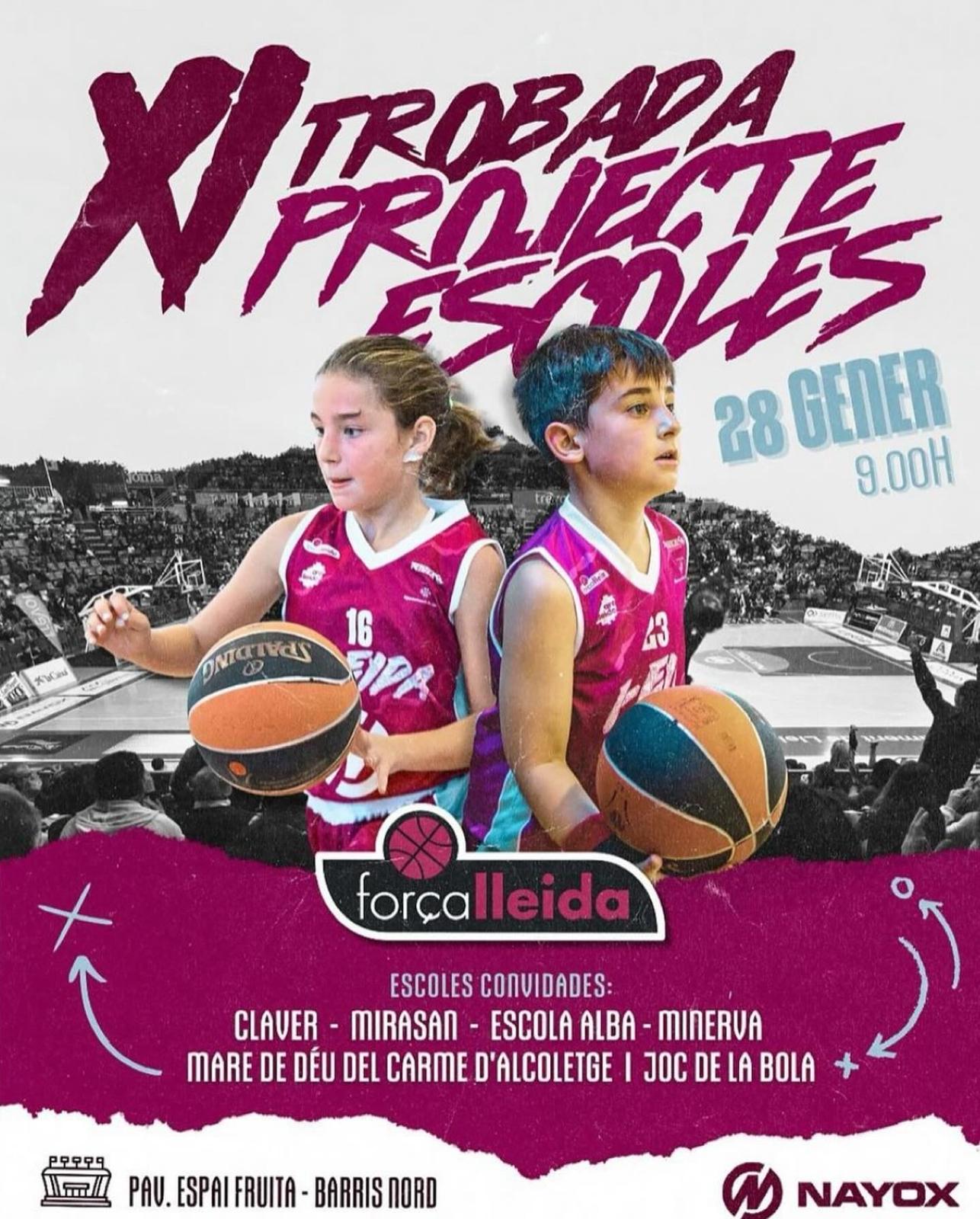 31/01/24El dia 28, alumnes de la extraescolar de bàsquet van participar en el Projecte Escoles del Força Lleida. Van gaudir d’un matí ple de bàsquet, amb partidets i estacions, amb companys d’altres escoles de Lleida. Per acabar, van rebre la visita d’alguns jugadors i jugadores del primer equip!
