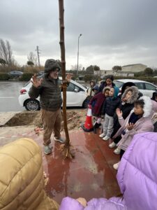 L’Escola Minerva forma part de la Xarxa d’Escoles Sostenibles de l’Ajuntament de Lleida i aquest dimecres 12 de febrer, els alumnes de 3r hem col·laborat en la plantació d’arbrat a la avinguda Pinyana dins del projecte de renaturalització de ciutat. Concretament aquesta acció s’emmarca en la proposta de Sendes Arbrades, amb les quals es vol facilitar connectar diferents espais verds de la ciutat per carrer ombrejats. Ha estat una experiència molt bonica, hem posat nom als “nostres” arbres, i quan es facin grans gaudirem de les seves ombres.