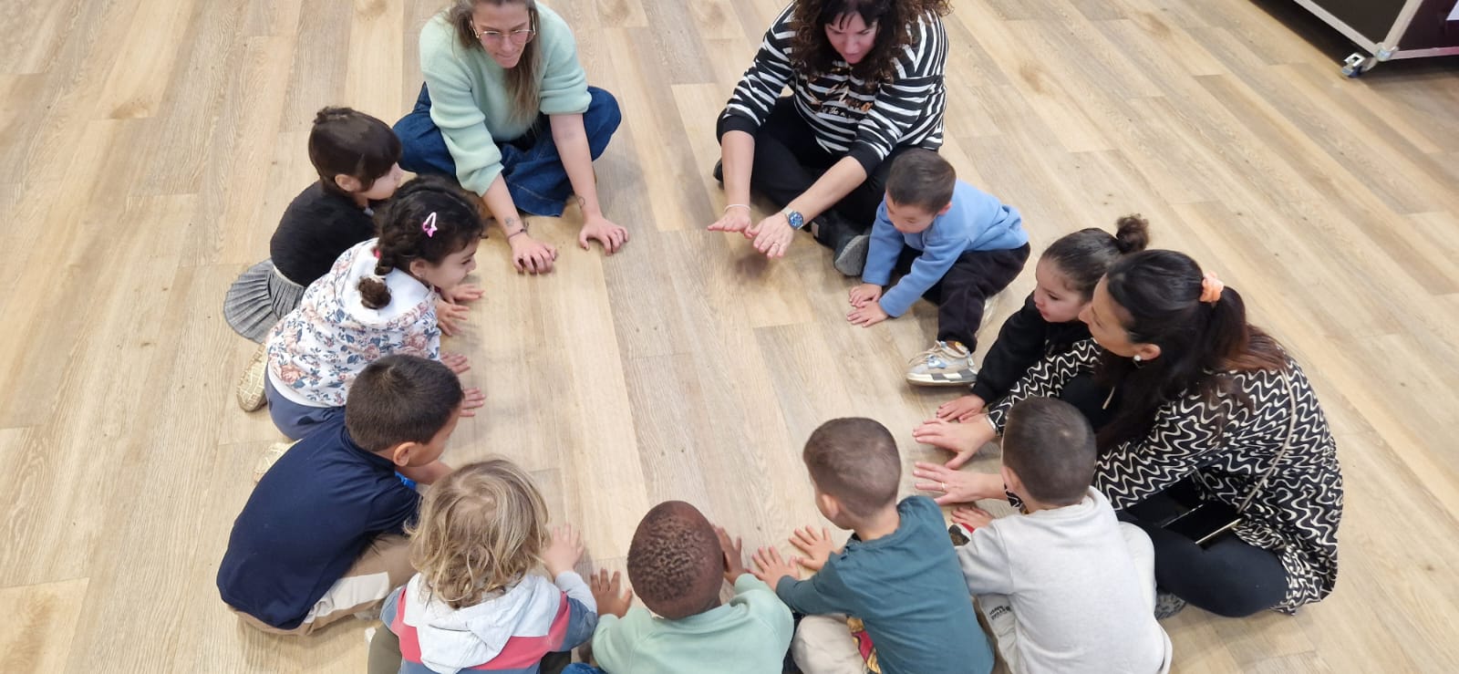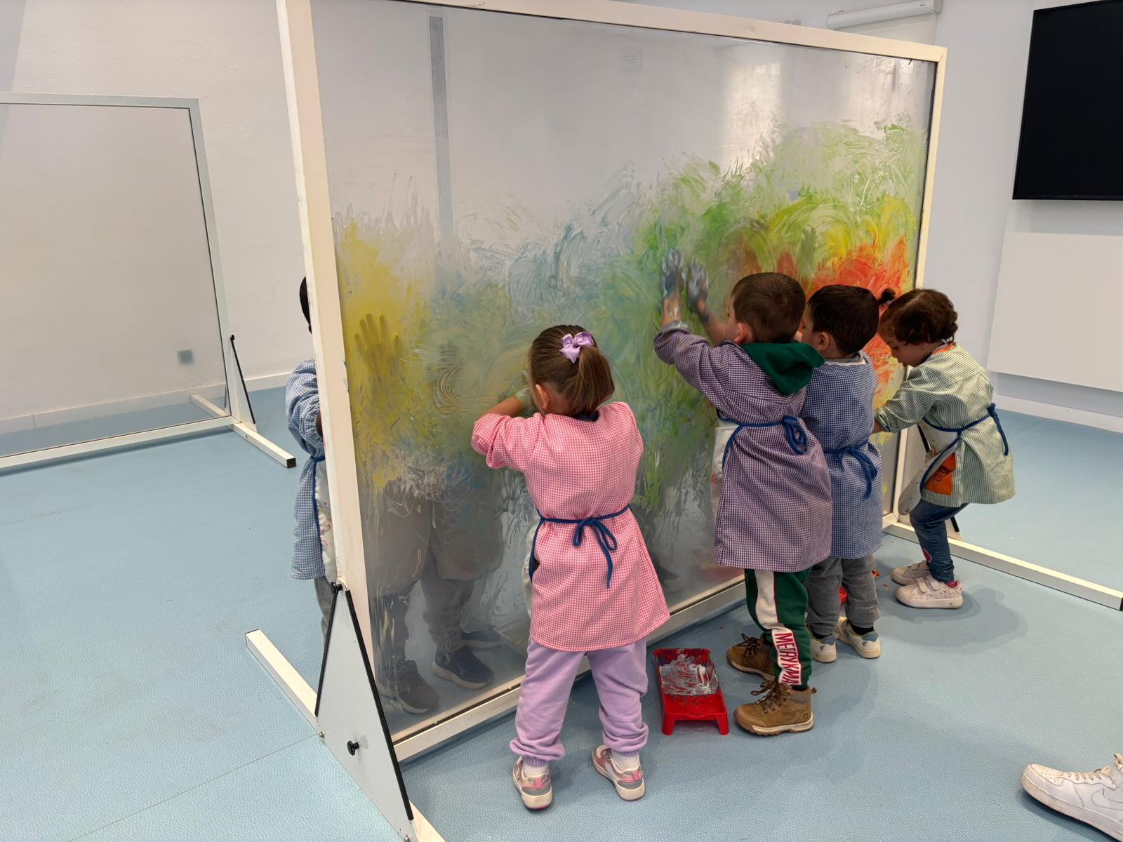 Els infants d’i3 han fet un taller a l’Educaixa on han descobert el potencial que tenen amb les seves mans. Han experimentat amb el tacte, han explorat superfícies amb diferents textures, han buscat gestos associats a expressions. Finalment, han convertit els gestos en part del procés de creació artística construint entre tots una obra amb les seves empremtes.