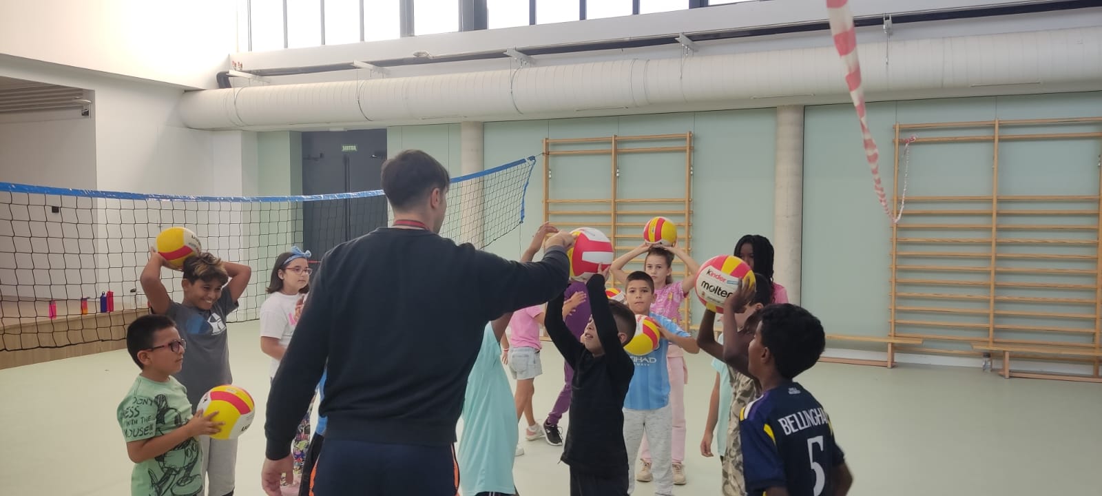 ENS VISITA EL BALÀFIA VOLEI Robert Hernández29/09/24 Aquesta setmana ens han visitat un jugador i l’entrenador del Balàfia Volei per realitzar una sessió d’aquest esport a l’hora d’educació física a CM i CS. Ens han ensenyat les tècniques fonamentals d’aquest esport i ho hem gaudit.