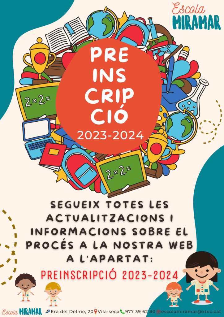 PREINSCRIPCIÓ 2023-2024 Salva Soria27/01/23 CITA PRÈVIA Si necessiteu ajuda per tramitar la Sol·licitud de preinscripció podeu demanar cita al següent enllaç i us ajudarem amb els tràmits. EL NOSTRE CODI DE CENTRE ÉS: 43010530