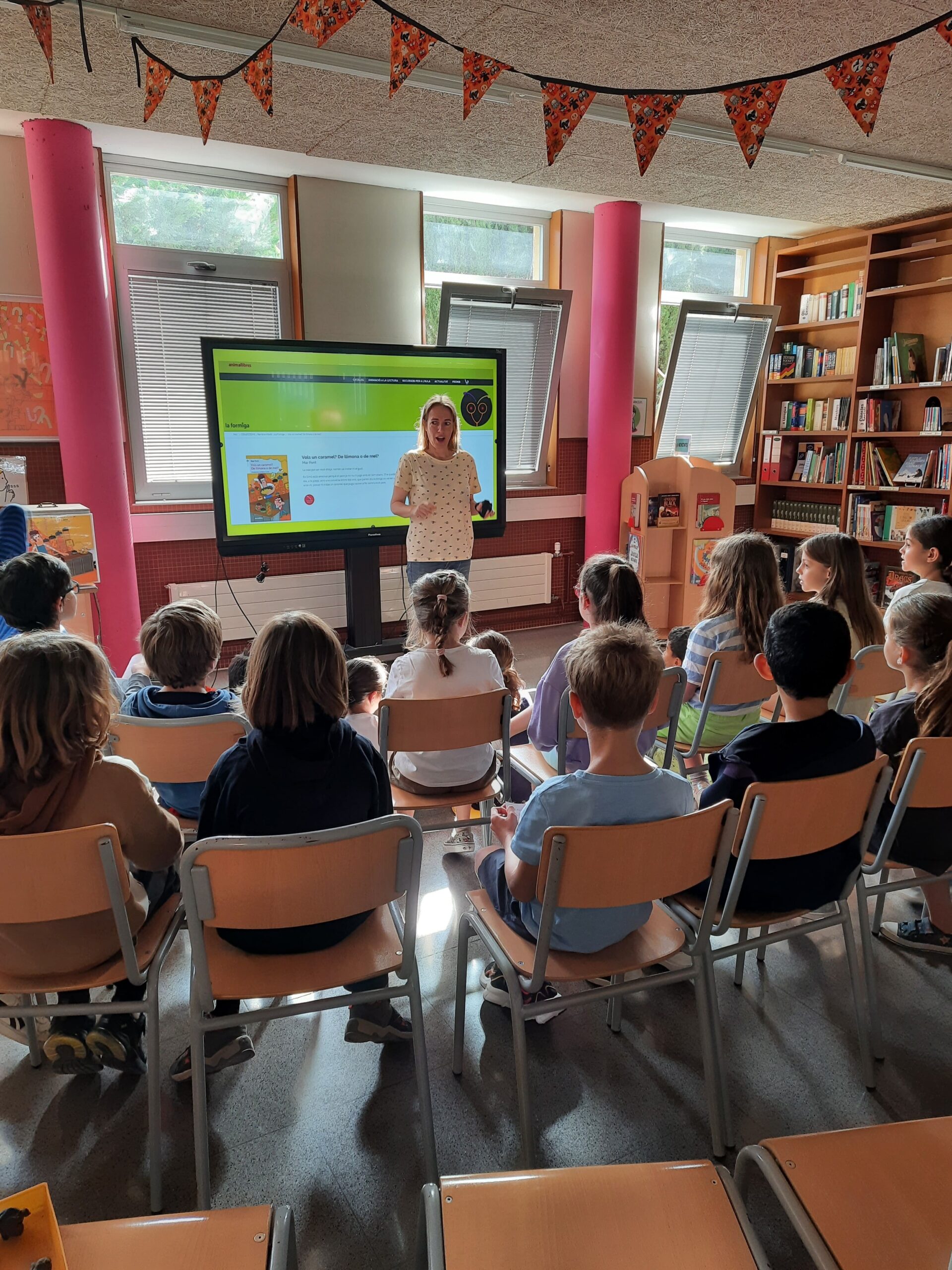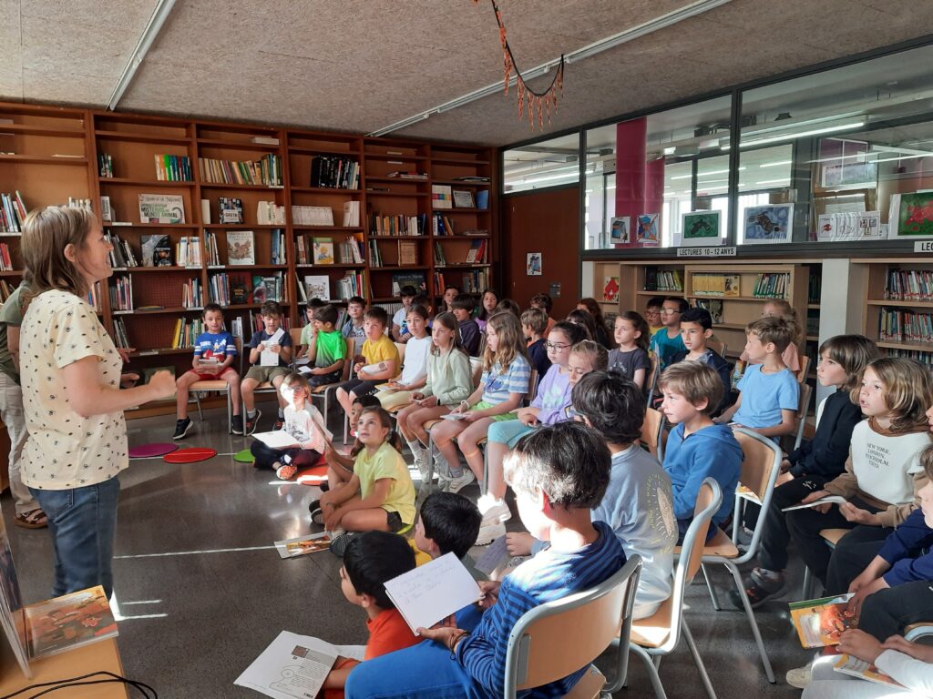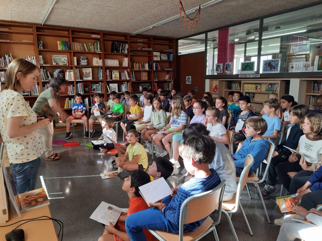 El passat dilluns 29 de maig ens va visitar la Mar Font l’autora del llibre que vam llegir a classe durant diverses setmanes “Vols un caramel? De llimona o de mel?