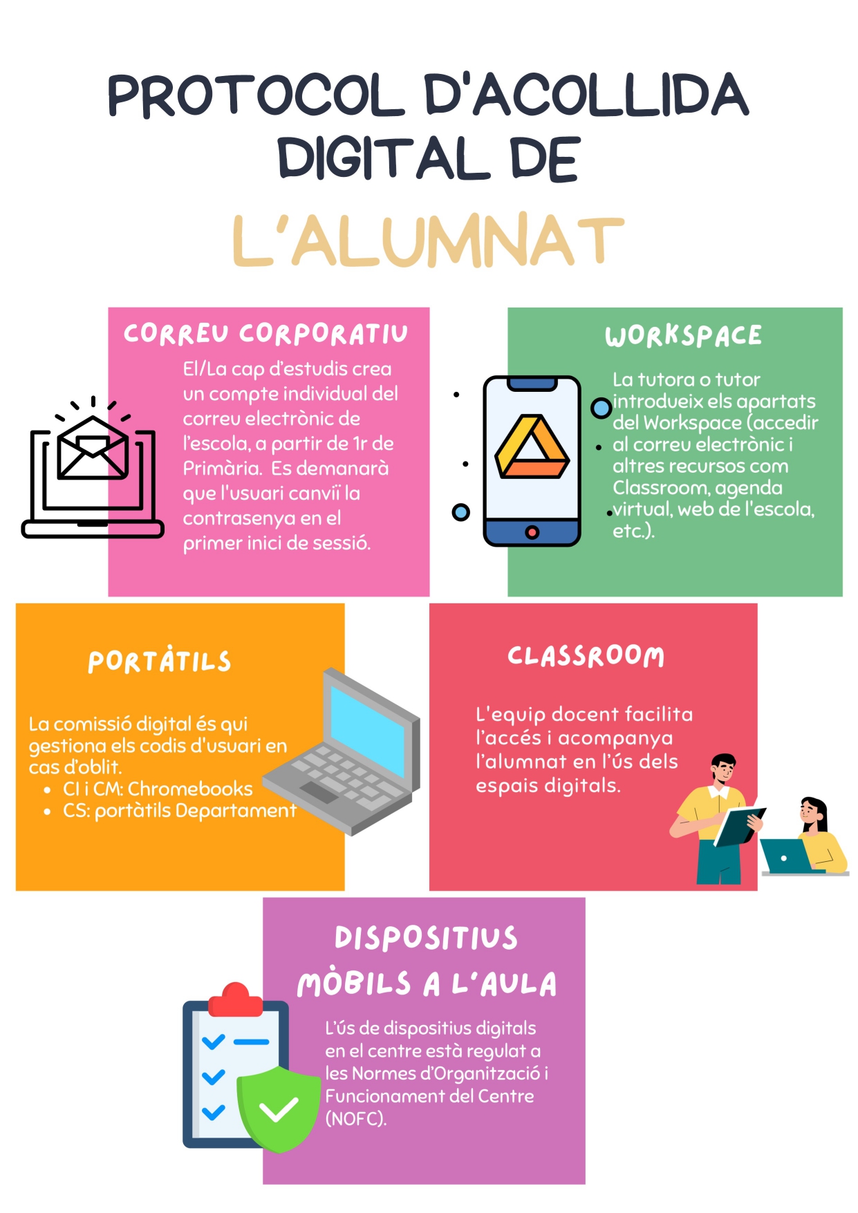 Aquest protocol ofereix informació detallada sobre el funcionament i les eines digitals que utilitzarem a l’escola per facilitar la comunicació i la coordinació entre l’escola i les famílies. Us convidem a llegir-lo atentament i a contactar amb nosaltres per a qualsevol dubte que pugueu tenir.