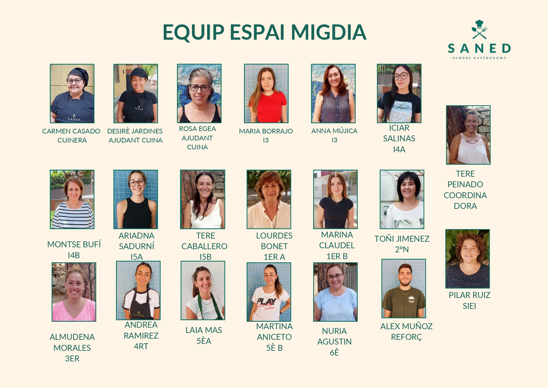 L’Equip de Pedagogia de Saned posa a disposició del centre, monitors i educadors que complementen el servei de menjador amb activitats relacionades amb hàbits alimentaris, higiene, socials i de comportament. Activitats que es coordinen dins un Pla de Menjador específic per al centre.