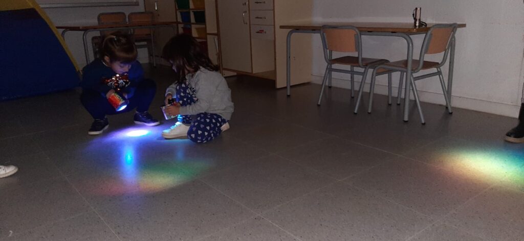 Els nens i nenes d’EI4B hem experimentat per veure l’arc de Sant Martí, el nom de la nostra classe.