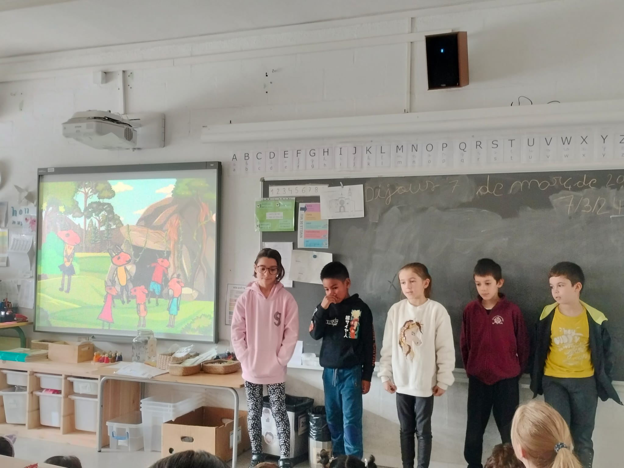 Un cop els hem tingut escrits, ens hem repartit els personatges i hem explicat els contes als companys i companyes d’infantil i a les famílies.