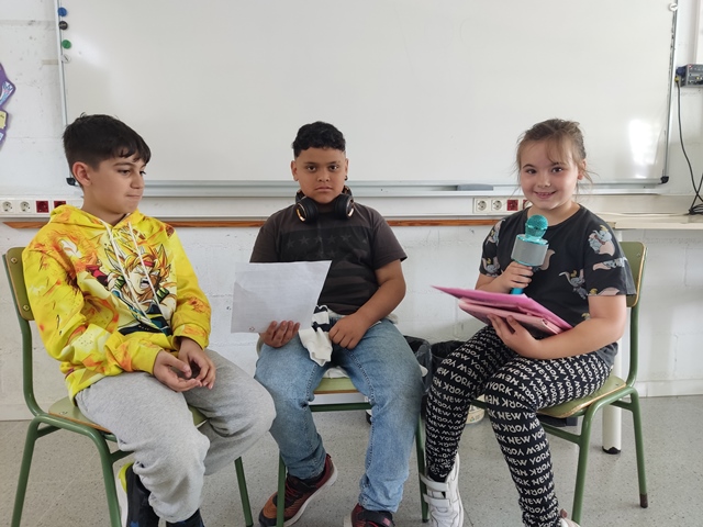In addition to this and to enhance speaking, they worked in small groups to create a TV show in which they interviewed a famous person.