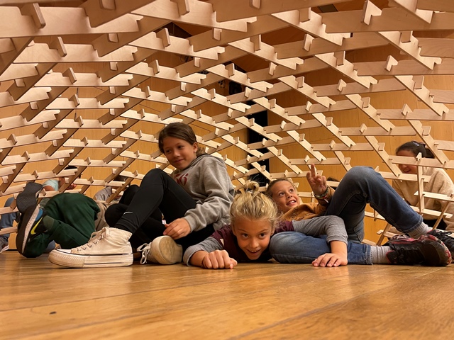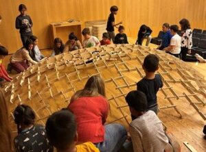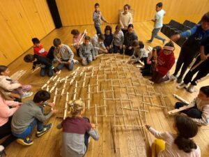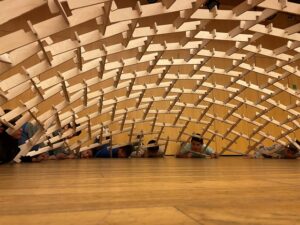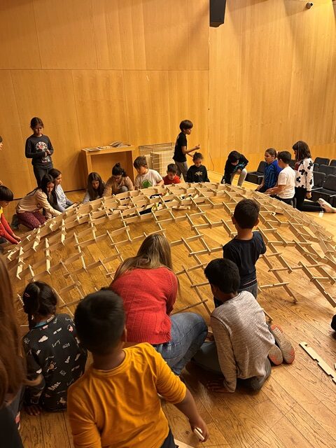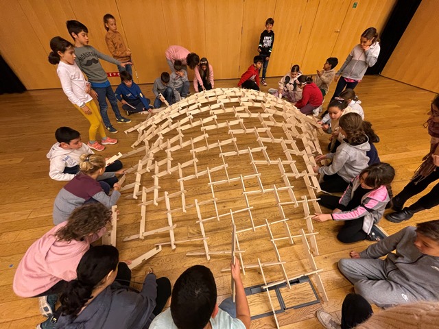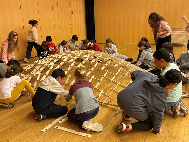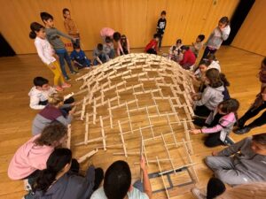 Som els alumnes de 4t i hem fet un taller sobre les cúpules de Leonardo a l’Espai Cultura Fundació Sabadell. En aquest taller hem construït col·lectiva i cooperativament una cúpula d’uns 4 metres de diàmetre i 1 metre d’alçada aproximadament.