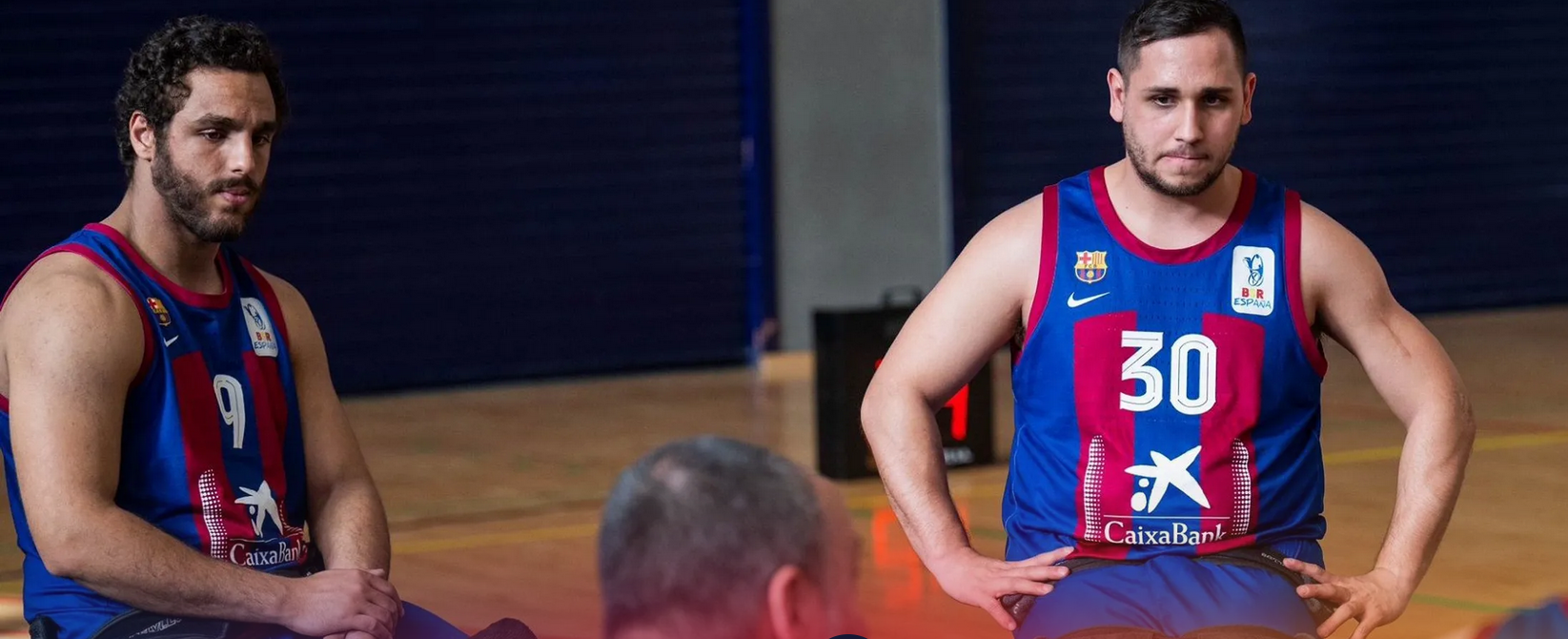 A educació física, al segon trimestre, vam treballar l’esport del bàsquet i ara hem conclòs l’aprenentatge amb bàsquet en cadira de rodes. L’activitat l’han dirigit tres jugadors de bàsquet del FCBarcelona en cadira de rodes. Aquí podeu veure dos dels jugadors que van animar l’activitat en una foto del FCB.