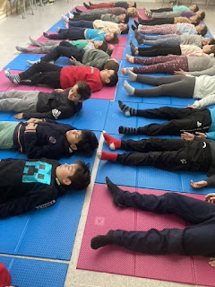 A la sessió de dansa ens hem regalat uns instants per a prendre consciència de la nostra respiració, aturant els pensaments i l’agitació que en general sempre ens acompanya.