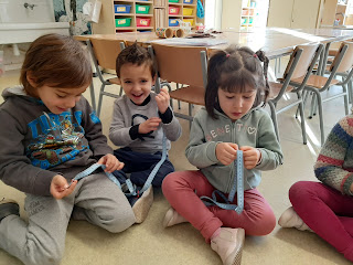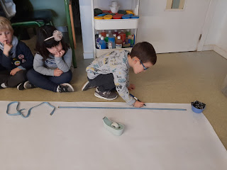 Enganxem quatre cintes d’un metre en un paper d’embalar i escrivim els números fins al 4.