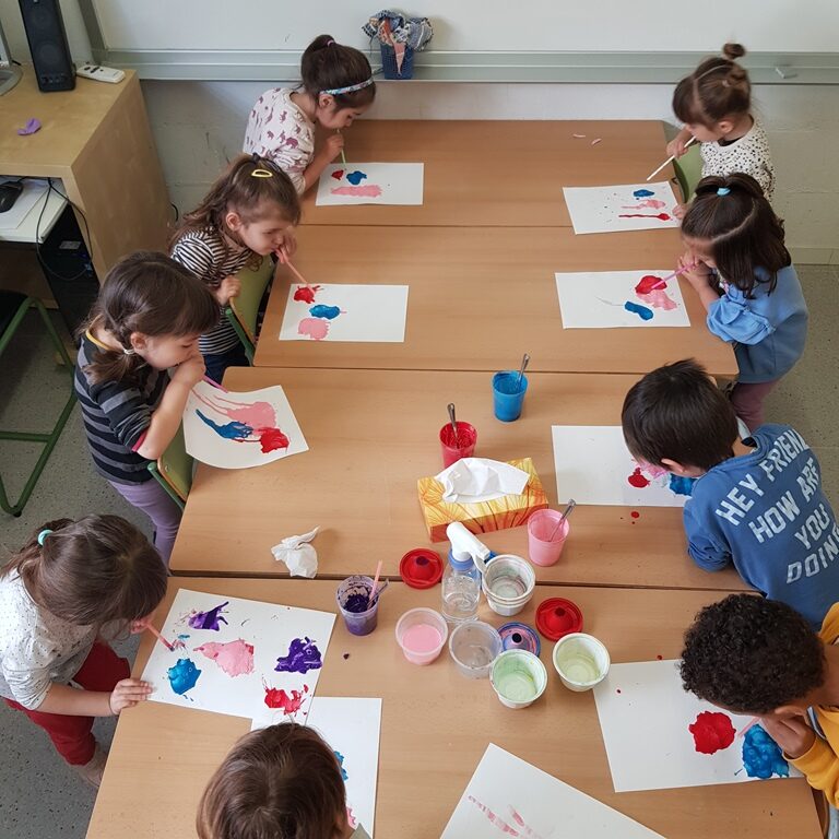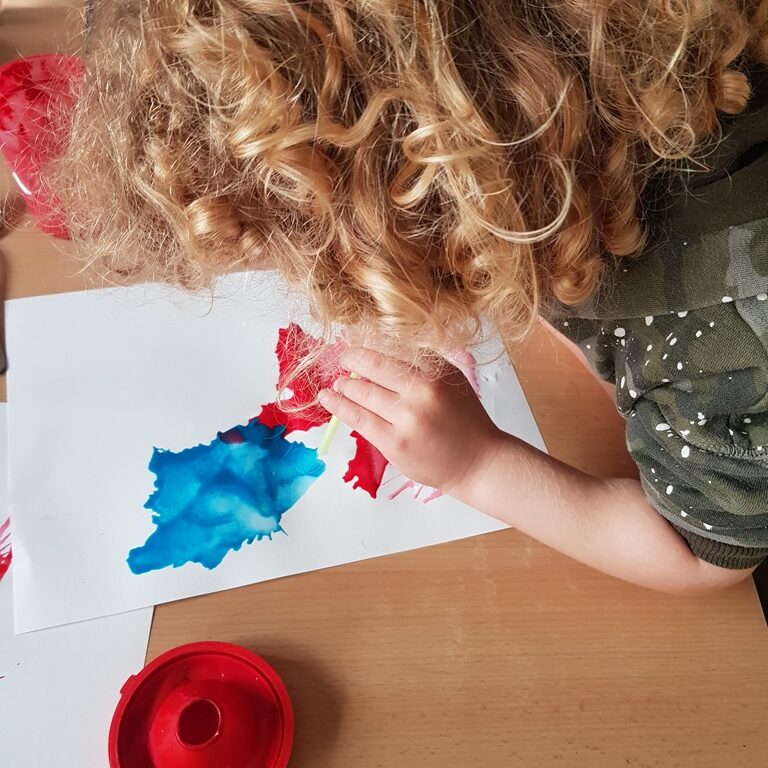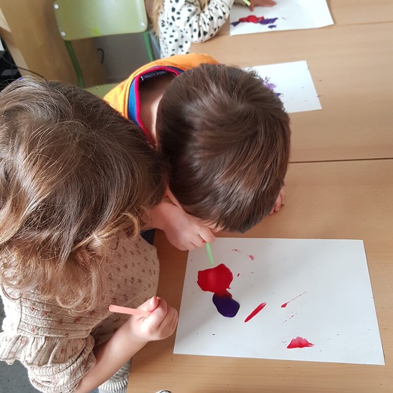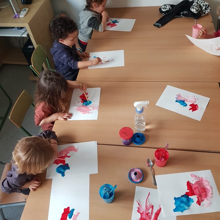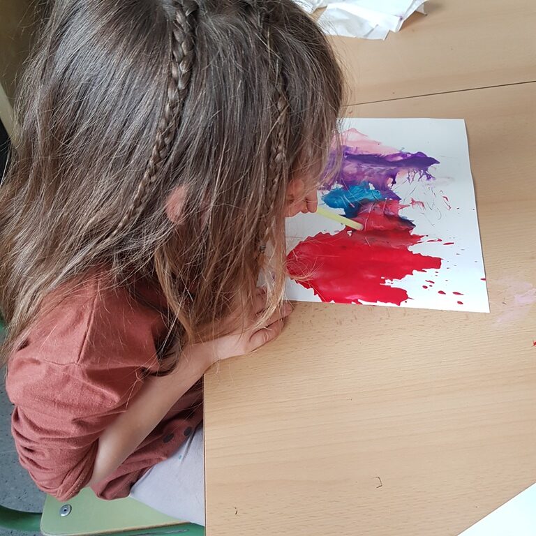Si voleu fer-ho a casa amb els vostres fills i filles… és molt senzill: Una mica de pintura diluïda en aigua, canyetes i paper.