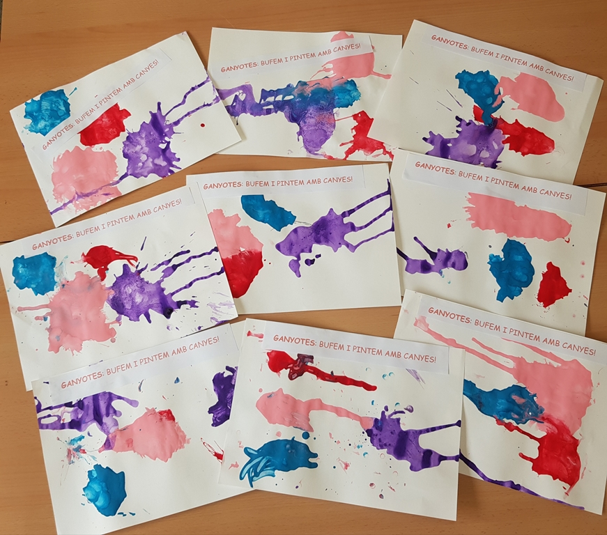 Ens ho hem passat la mar de bé, pintant amb les canyetes. Això de bufar és ben divertit i també una activitat molt recomanable pels més petits.