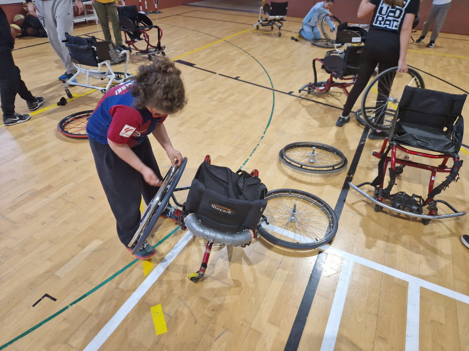 Les últimes setmanes l’alumnat de 5è van realitzar l’activitat de Global Basket. Es van posar a la pell dels jugadors que hi juguen, alguns ho fan a peu i d’altres amb cadira de rodes perquè tenen alguna disfuncionalitat. Va ser molt interessant el que van reflexionar un cop acabada l’activitat. També van participar al desmuntatge de les cadires.