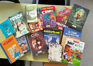 Per tal de fer un bon còmic hem demanat recursos a la biblioteca Vapor Badia: llibres de còmics per analitzar i extreure les característiques d’aquest gènere i llibres sobre la Cultura de la Pau.