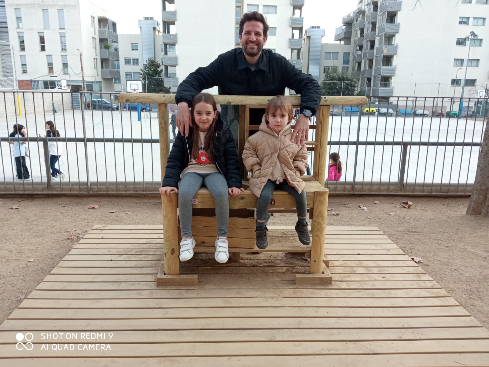 El pare de la Greta i la Frida ens ha construït aquesta plataforma per poder posar la cuineta.