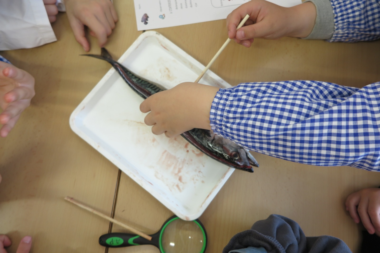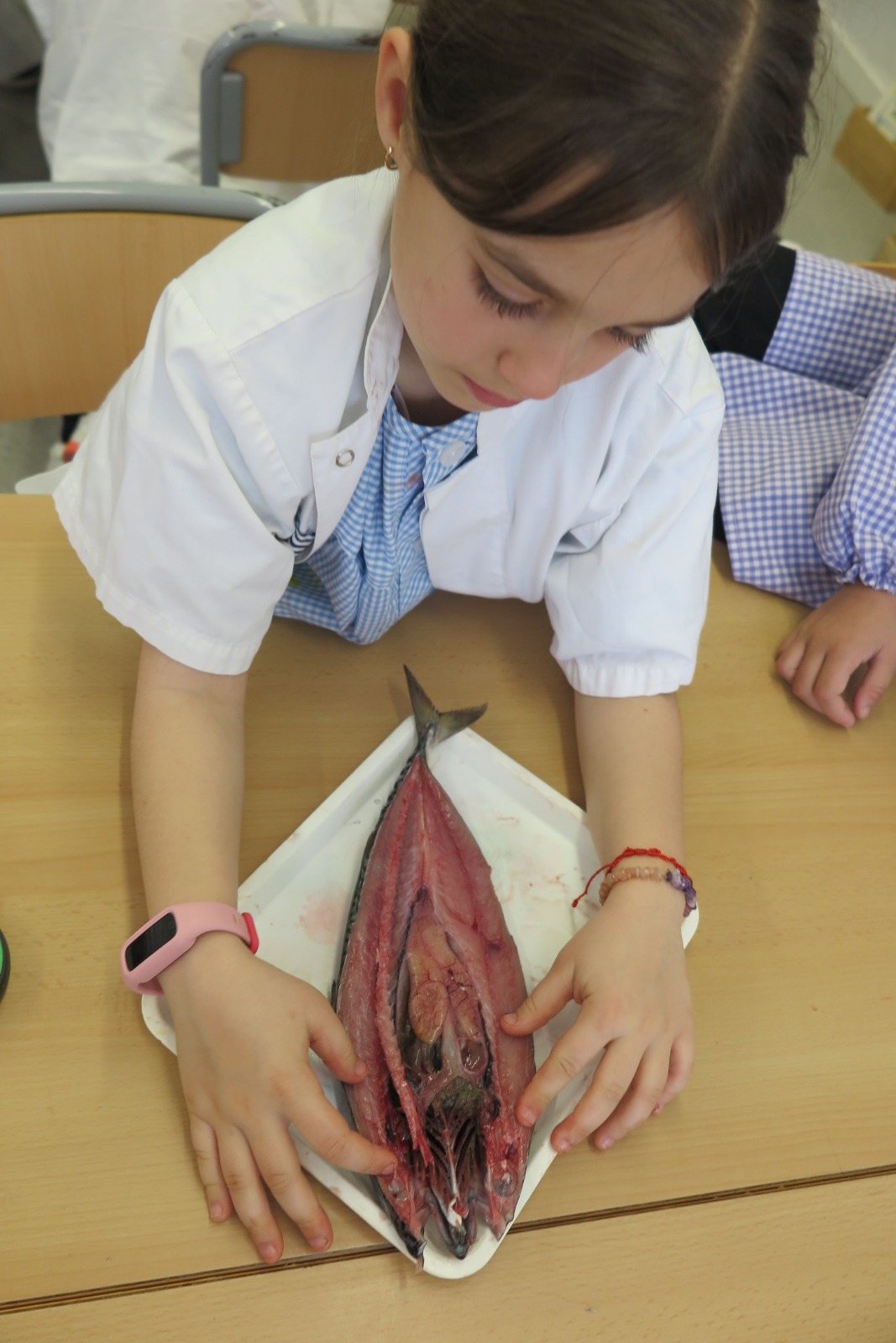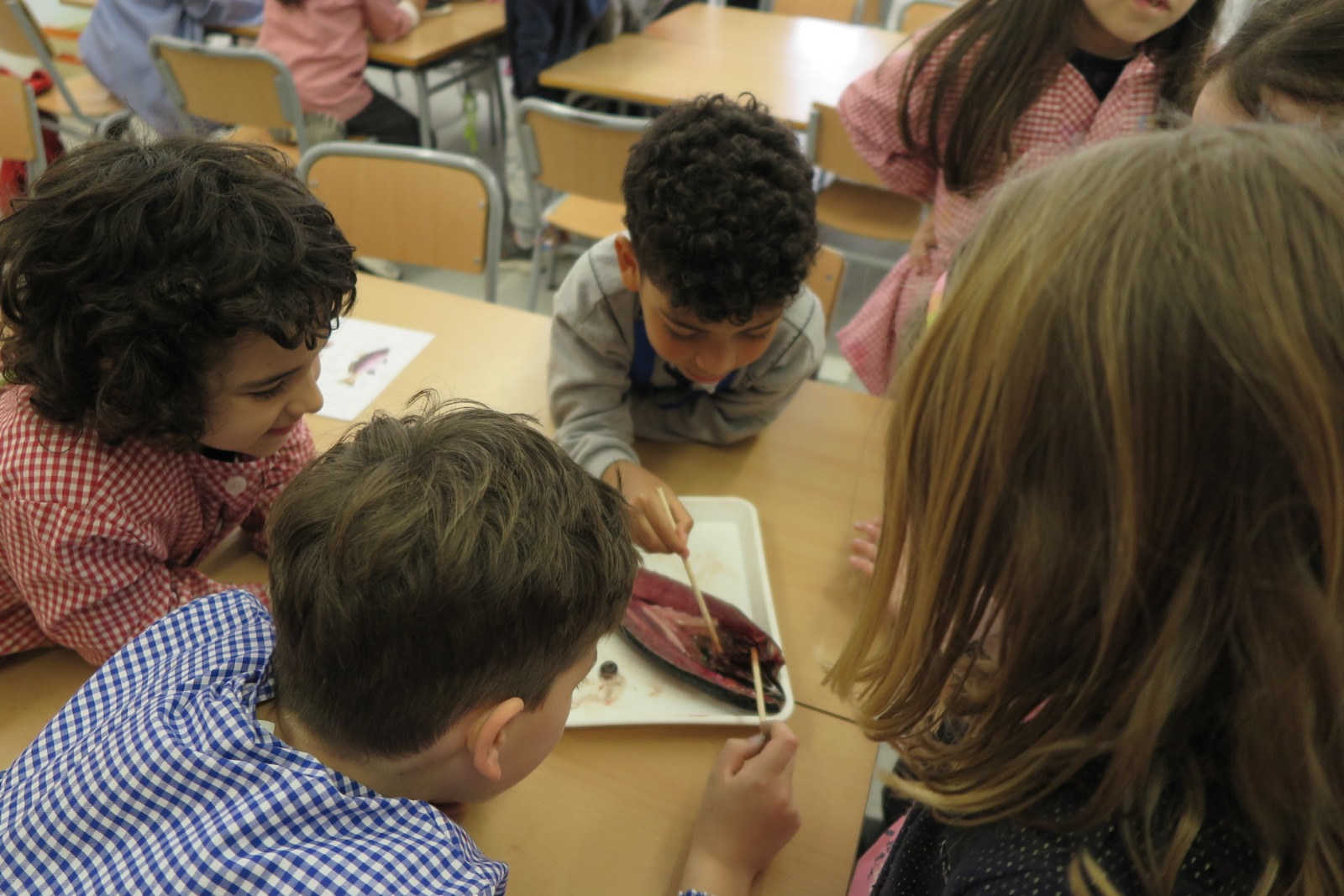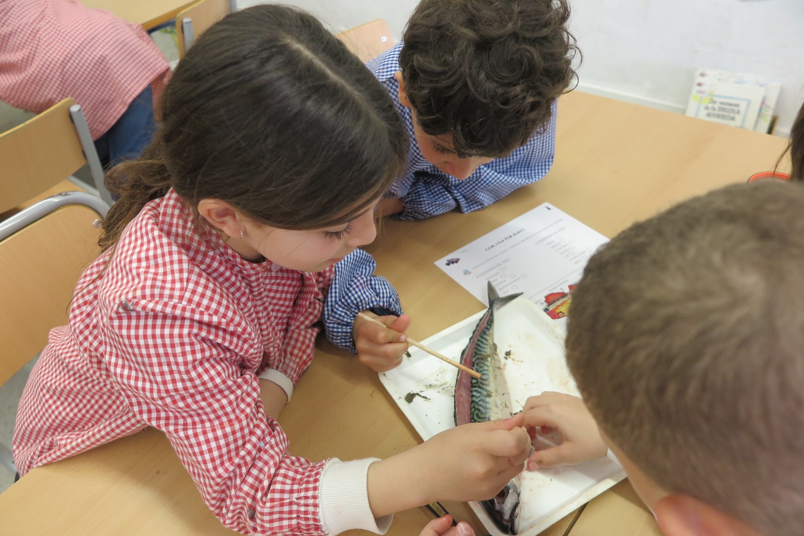 Van aprofitar l’activitat per identificar i localitzar algunes de les parts del peix que ja havien treballat prèviament a classe.