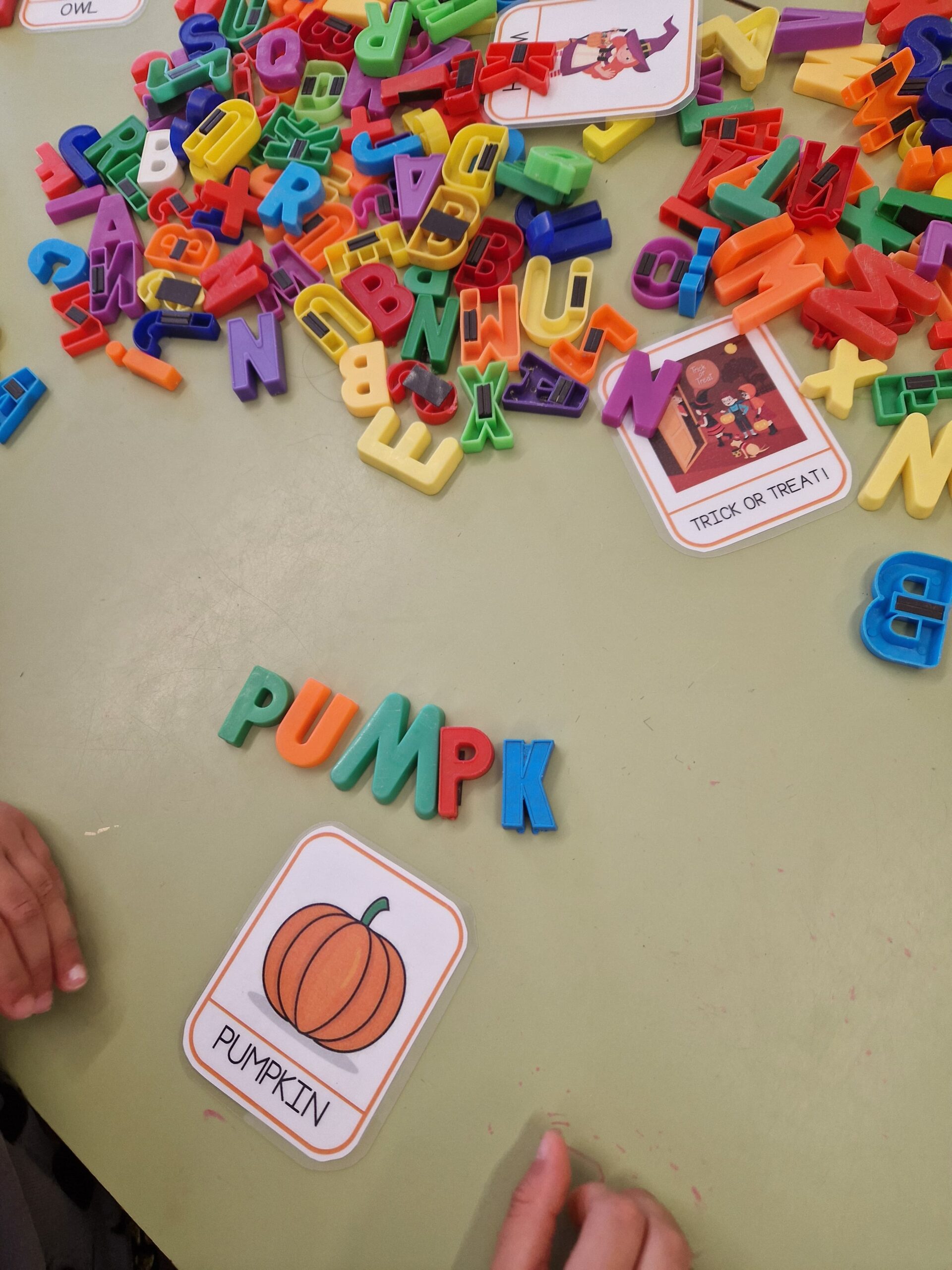●Play in corners: search and find, look for the letters of Halloween vocabulary and memory.