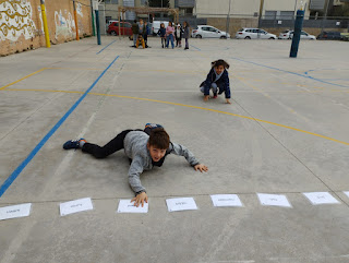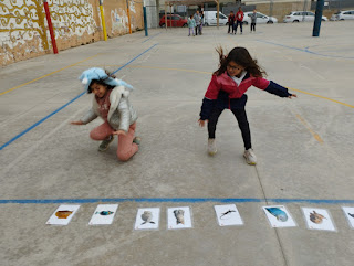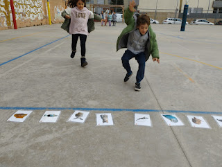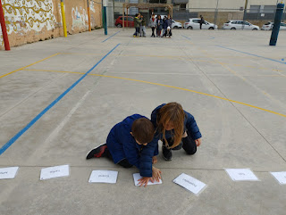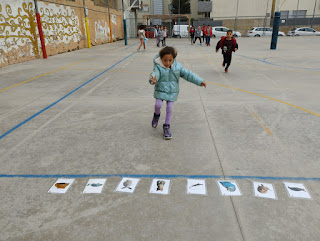 Every time we get new vocabulary, half of the group goes outdoors to play a variety of games: races (go and touch), the cowboy/girl, memory, wall tap… We learn new words and it is so much fun!