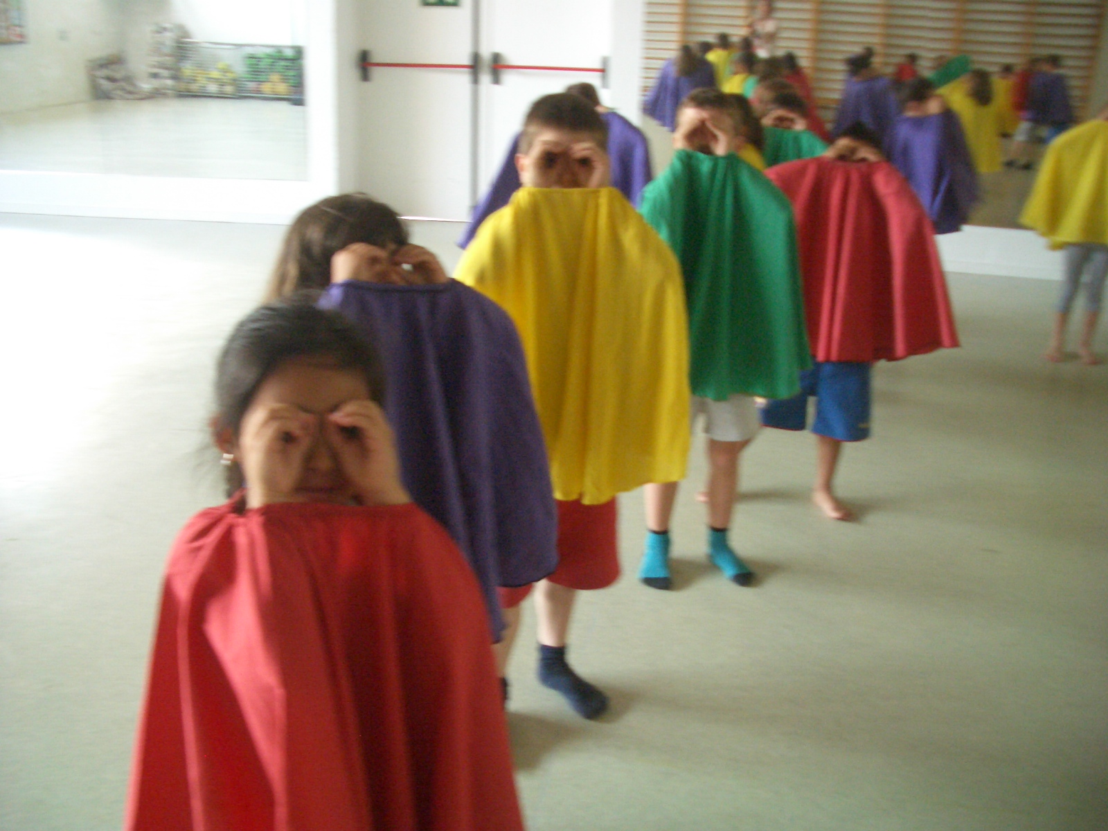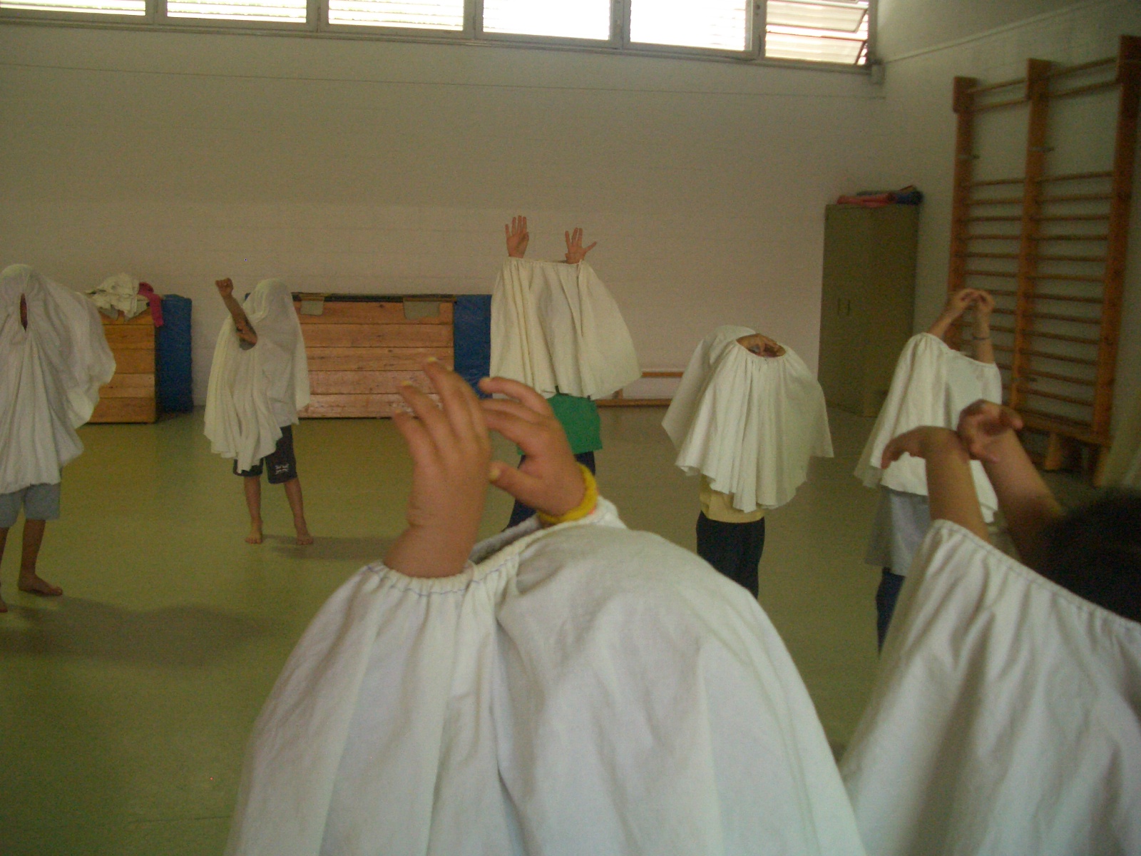 4. Exercicis diversos: de llenguatge corporal (vocabulari amb gestualitats i moviment, direccions energètiques del moviment, diàlegs: preguntes i respostes). D’espai, temps, mirada, contacte, improvisació, ritme, qualitats de moviment, desplaçaments, nivells (terra, intermedi i alt), estats d’ànim, moviments que parteixen de la quotidianitat, ús d’elements…