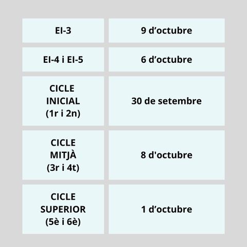 Hem estrenat una nova zona de pati: EL BIBLIOPATI. En aquest espai els infants poden passar una estona tranquil·la de lectura i de jocs així com d’experimentació i moviment. Moltíssimes gràcies a l’AFA i a totes les famílies de l’escola per fer possible aquest espai, per millorar les nostres instal·lacions i per crear un espai […]