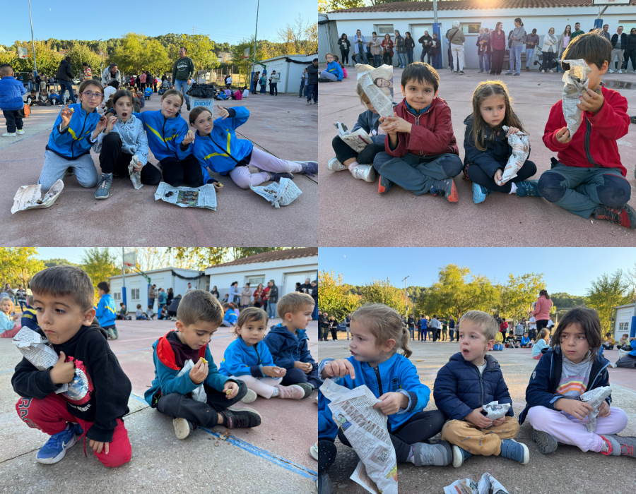 A la tarda, s’han realitzat jocs de cucanya 🪀🤸🏻♀️🤼, hem ballat 💃🏼🕺🏼 el ball de la castanyera 👵🏻 i hem menjat 😋 castanyes 🌰🌰 i panellets 🍪🍪 tots plegats. 👏🏻👏🏻👏🏻