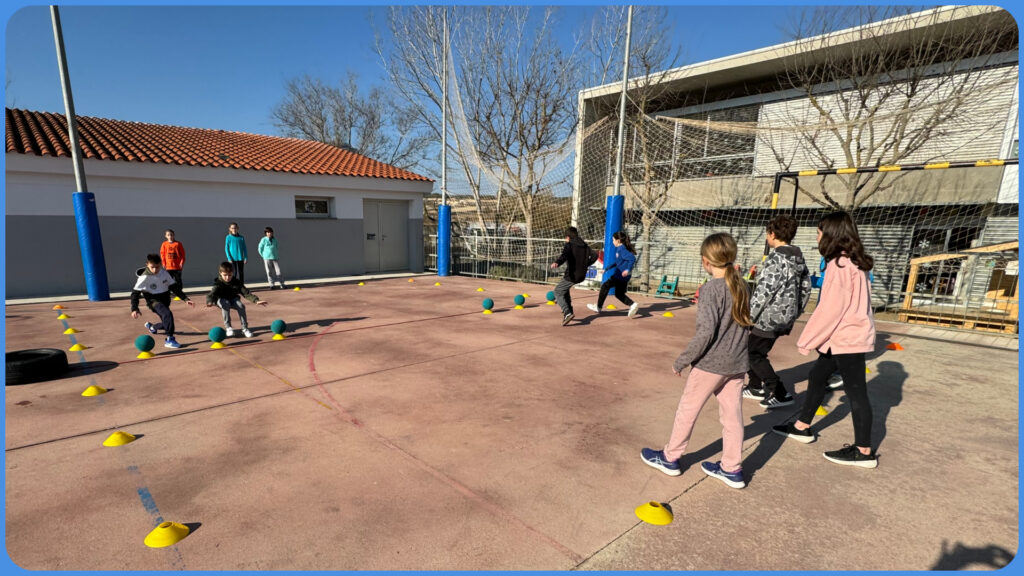 Les i els alumnes de 5è 👫, aquestes últimes setmanes 🗓️, hem estat jugant a Dodgeball. 🏐🏐🏐🏐🏐🏐 Un joc de dos equips mixtos 👫👫👫 compostos de sis persones que juguen a la meitat d’un camp 🏟️rectangular dividit pel mig, amb l’objectiu d’intentar eliminar els i les adversàries per mitjà de llançaments 🤾🤾♀️i recepcions de pilotes.