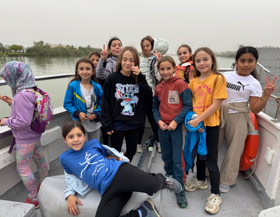 Mentre avançàvem riu avall, hem pogut veure ocells típics del Delta 🦩🕊️, les barraques tradicionals 🏡 i els arrossars 🌾 que envolten la zona. Tots estàvem emocionats mirant per la borda 👀😄 i fent fotos per recordar-ho 📸💚.
