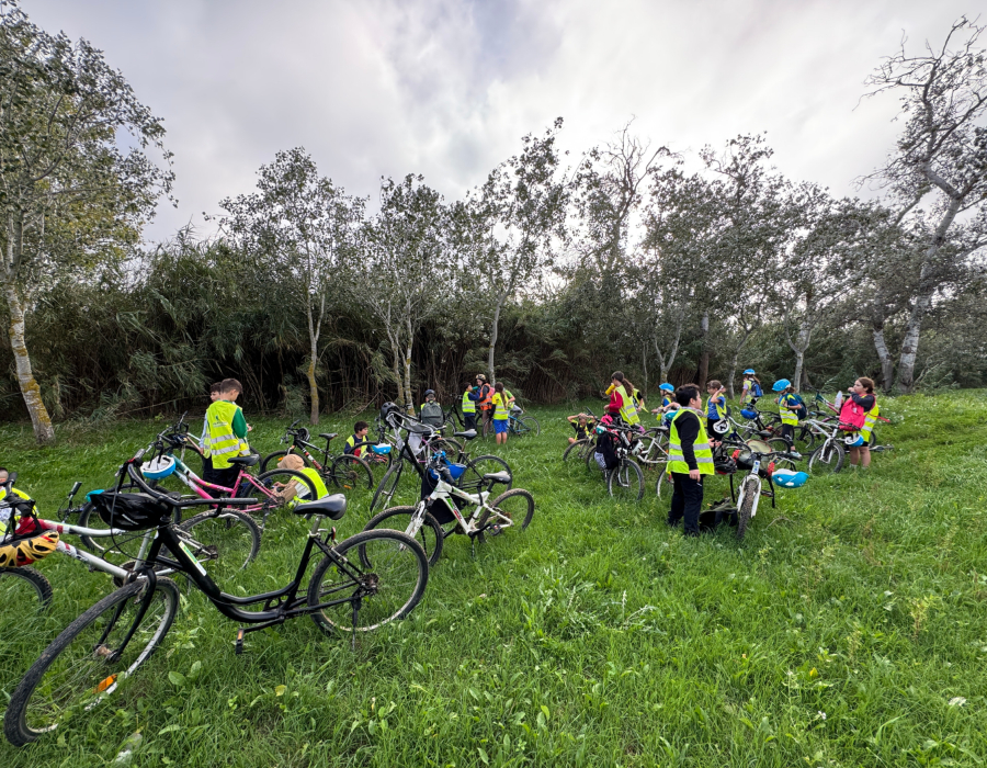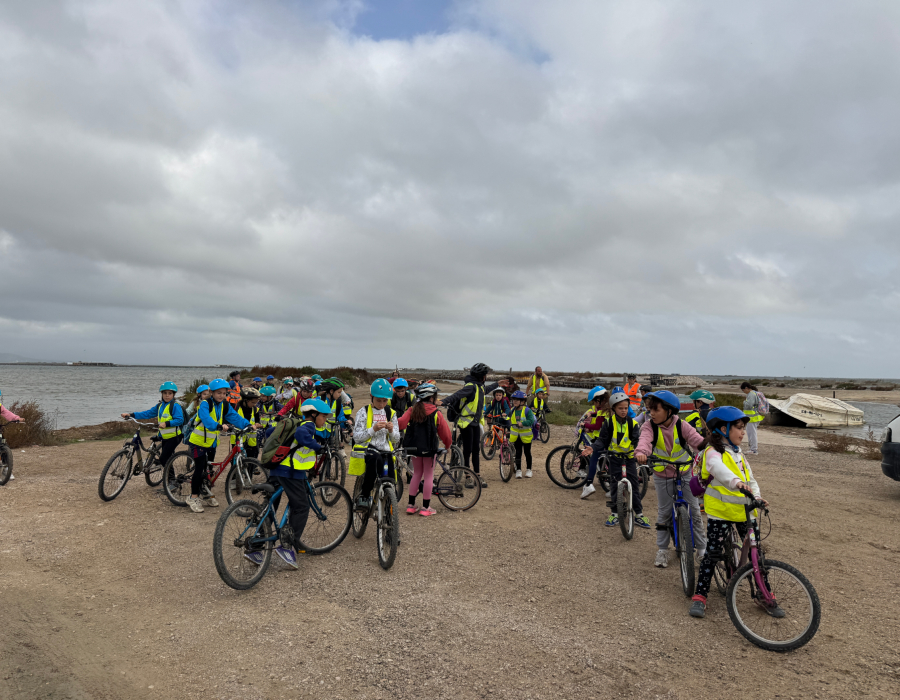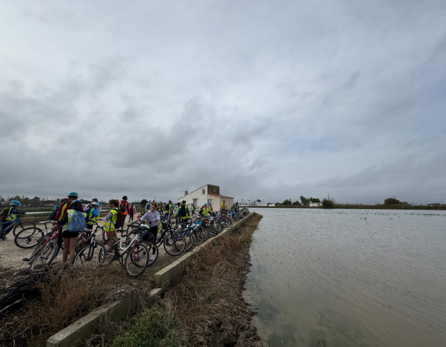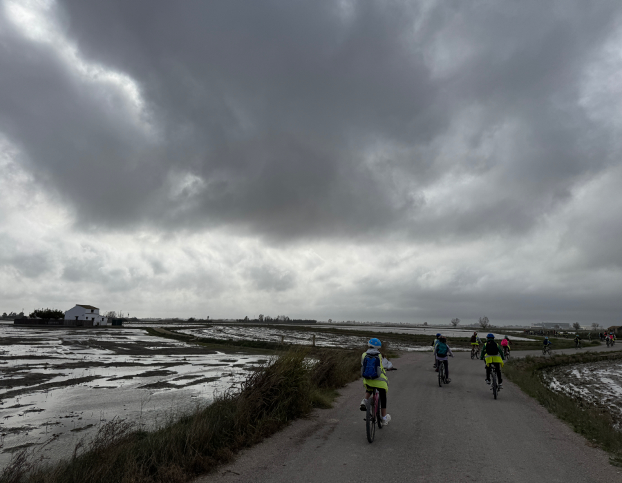 Al matí 🕗, hem fet una sortida en bicicleta fins al Fangar 🚴‍♂️🚴‍♀️, gaudint del paisatge espectacular del Delta 🌅🦩. Hem pogut veure arrossars 🌾, canals 💧 i molts ocells 🐦!