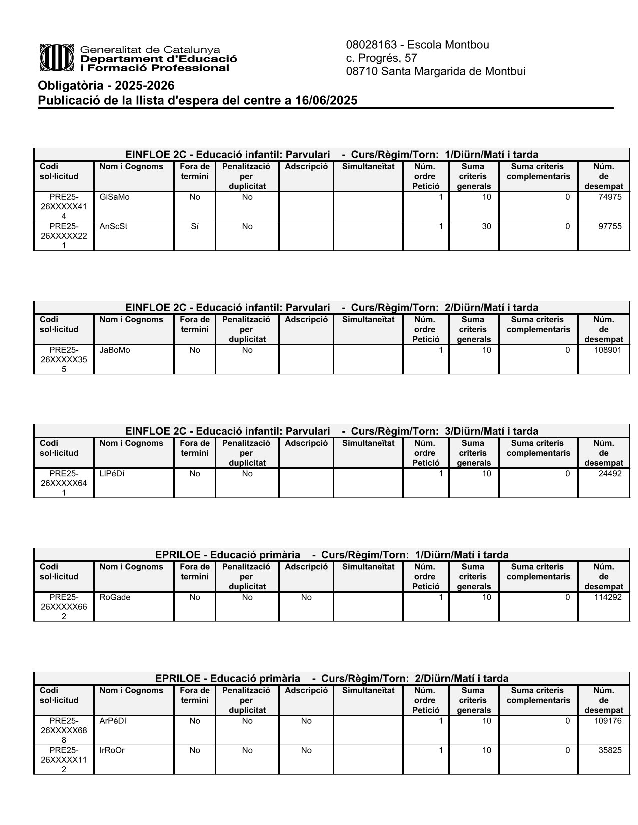 Publicació de la llista d’espera del centre a 16/06/2025 Feu un comentari / Per Escola Montbou / 16 de juny de 2025 / Preinscripció