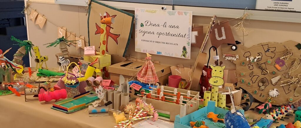 L’activitat consistia a reutilitzar materials que habitualment acabarien a les escombraries —com cartró, ampolles, rotlles de paper o envasos— per transformar-los en creacions úniques i plenes d’imaginació. Els alumnes han pogut construir tot tipus de projectes: cases, vehicles, animals, escenaris, objectes inventats i fins i tot petites maquetes amb històries pròpies.