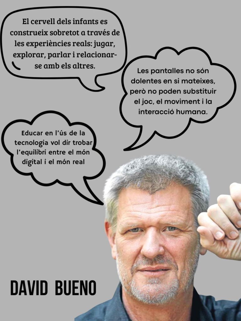 Segons David Bueno, el cervell infantil es desenvolupa sobretot a través de l’experiència directa amb el món: jugar, moure’s, interactuar amb altres persones i explorar l’entorn.
