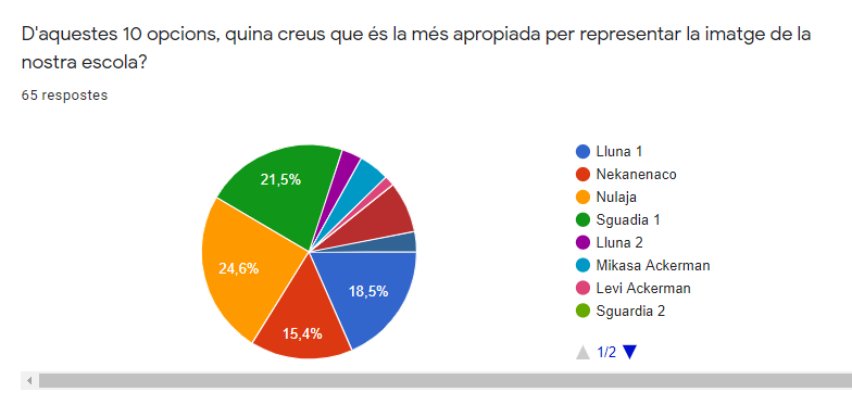 Finalitzat el concurs per escollir nou logotip per l’escola, tenim l’honor de presentar el disseny guanyador (imatge de l’esquerra) escollit per la comunitat educativa (resultats del gràfic de la dreta).