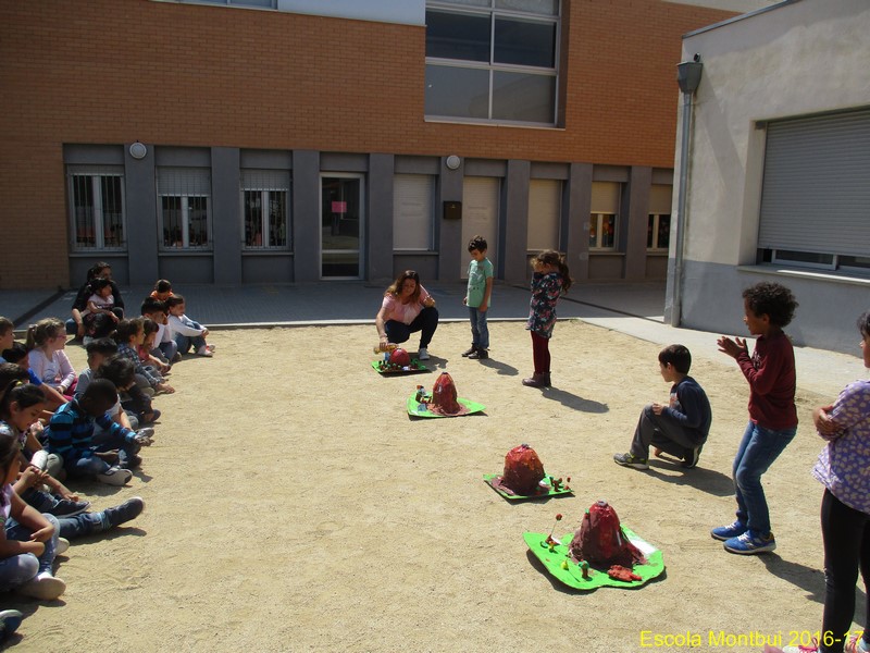 Finalment, ahir a la tarda, els infants de primer vam poder sortir el pati per fer explotar les maquetes dels volcans que vam estar dissenyant i creant la setmana passada. L’experiència va ser fantàstica, tot i que algun “va fer llufa”, la majoria vam fer erupció i la lava va lliscar per tot el volcà!!
