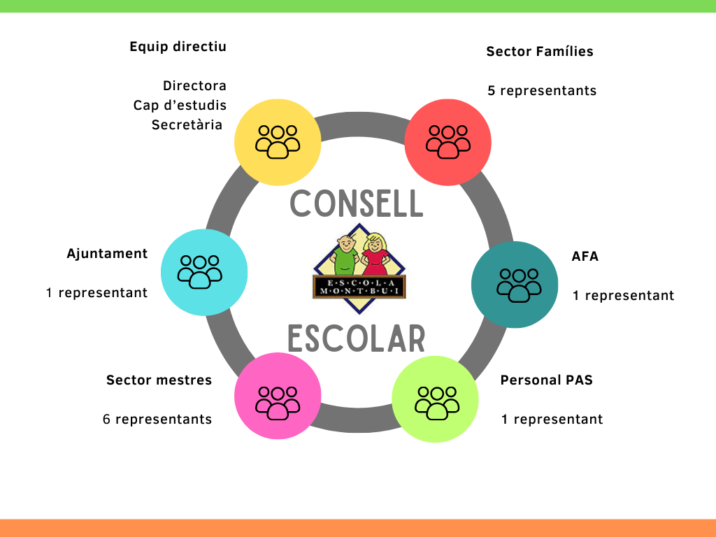 El Consell Escolar del centre és l’òrgan col·legiat de participació de la comunitat escolar en el govern del centre. En el consell escolar hi ha representats tots els col·lectius que intervenen en la comunitat educativa: director o directora, professorat, alumnes, personal d’administració i serveis, etc.