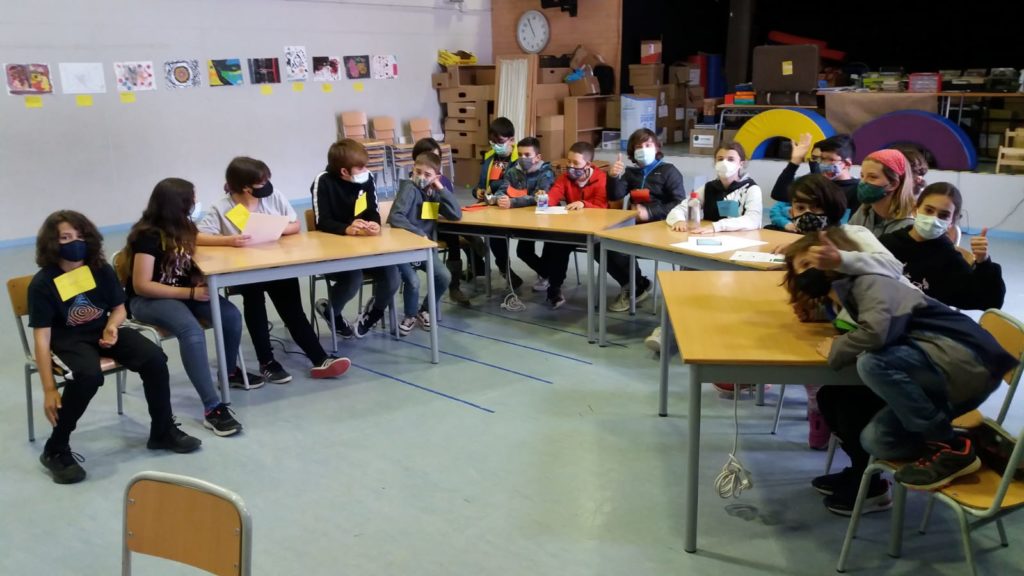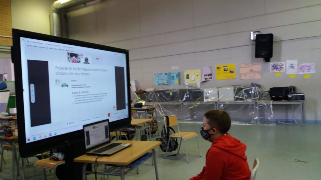 La segona part de l’activitat es va realitzar telemàticament, mitjançant una videotrucada de Meet i va ser dirigida per un membre del Parlament. Durant la sessió, es va fer una simulació de com es portava a terme l’aprovació d’un projecte llei. Cada grup: el blau, vermell, groc i verd van fer l’exposició de les esmenes que havien proposat i al final van votar per veure si quedava aprovada o rebutjada.