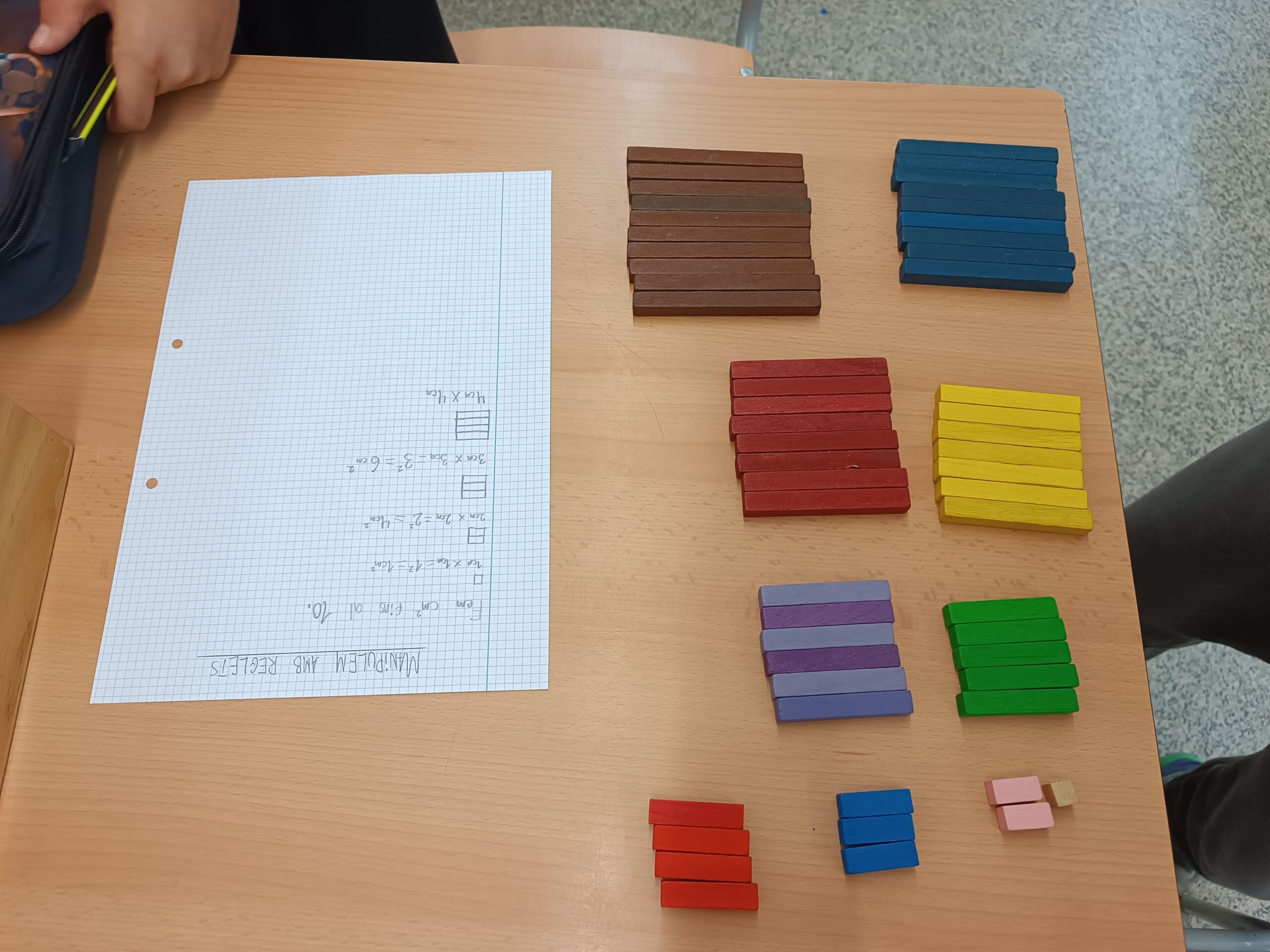 A continuació, vam passar a la fase de manipulació. En aquest moment vam repassar el concepte de perímetre i ràpidament ens vam endinsar en la comprensió de la superfície mitjançant l’ús de materials com els reglets, teles que representaven metres quadrats o el geoplà. D’aquesta manera vam descobrir les potències com a nombres quadrats i vam aprendre a calcular les àrees del quadrat, del rectangle i del triangle, fins arribar al cercle.