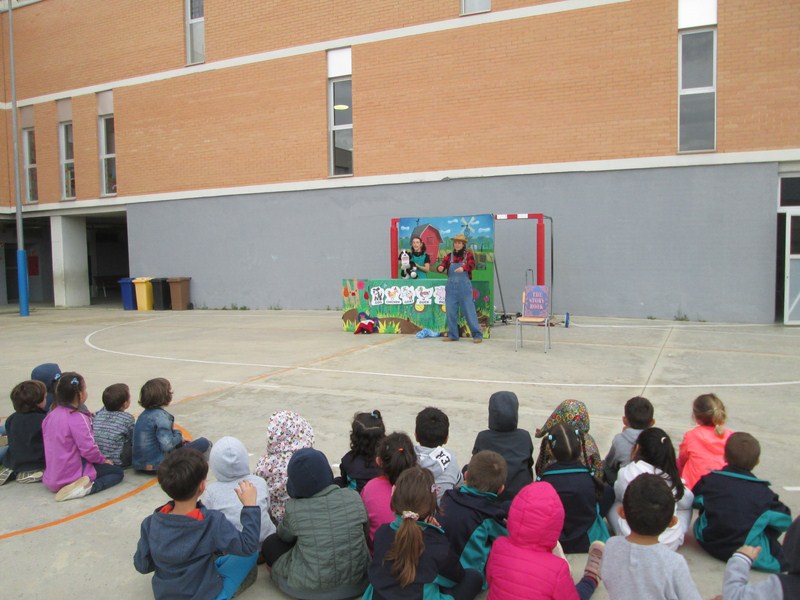Els nens i les nenes dels grups de P4 i P5 aquest dilluns 10 de Maig ens ha visitat la Cia. Ipa Productions i hem gaudit d’un espectacle de titelles en anglès a la pista de l’escola, “The farm“.