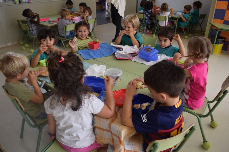 Són fotos organitzades en 4 blocs: hàbits i rutines de cada dia, gaudint dels espais, jugant al pati i fent feinetes en les estones de racons.