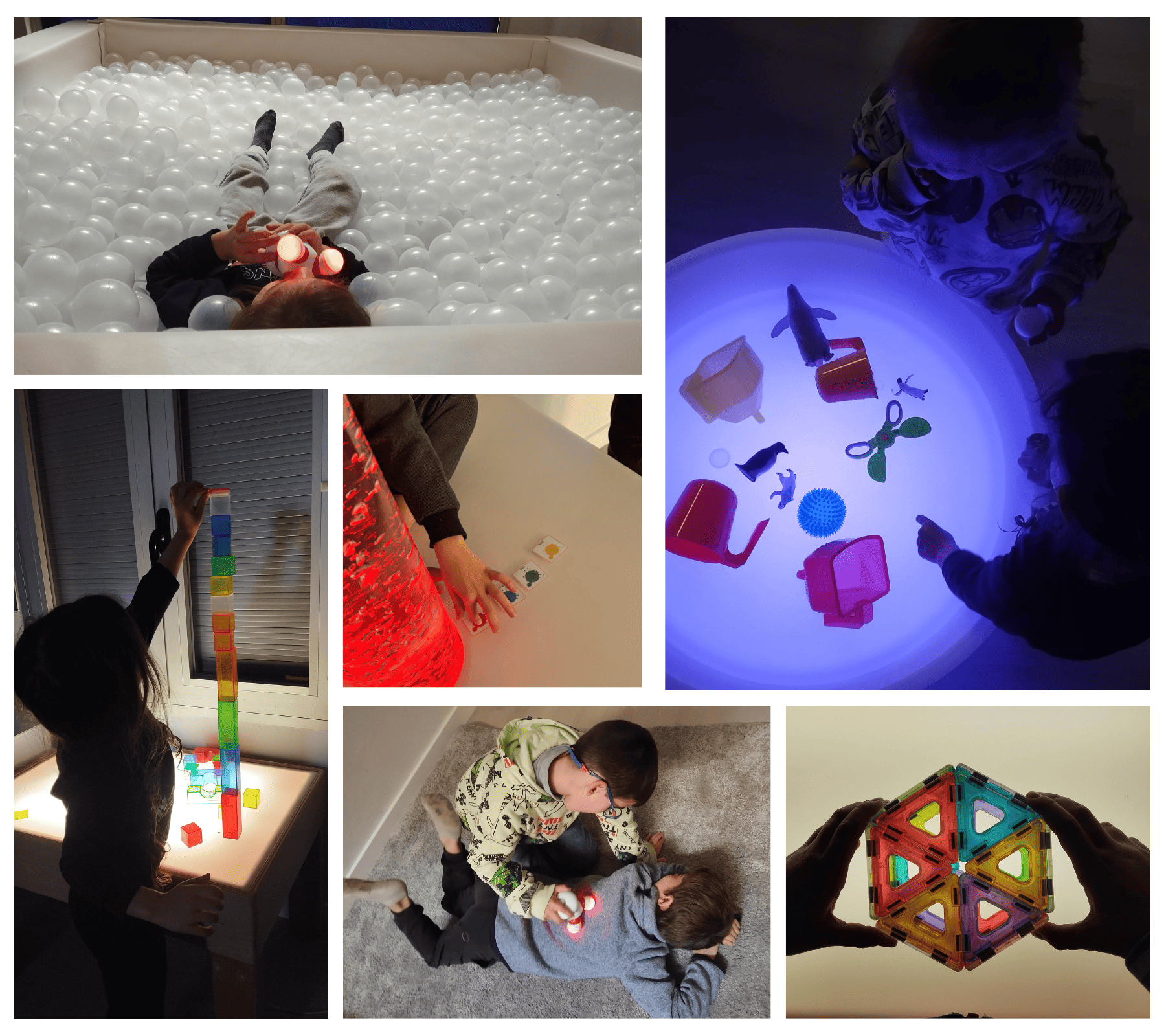 L’espai s’utilitza en petits grups, fet que possibilita un acompanyament proper i respectuós. A través de la llum, el moviment, les textures, els sons i les olors, els infants prenen consciència del propi cos, expressen emocions i descobreixen estratègies de regulació, competències fonamentals dins d’una educació integral.