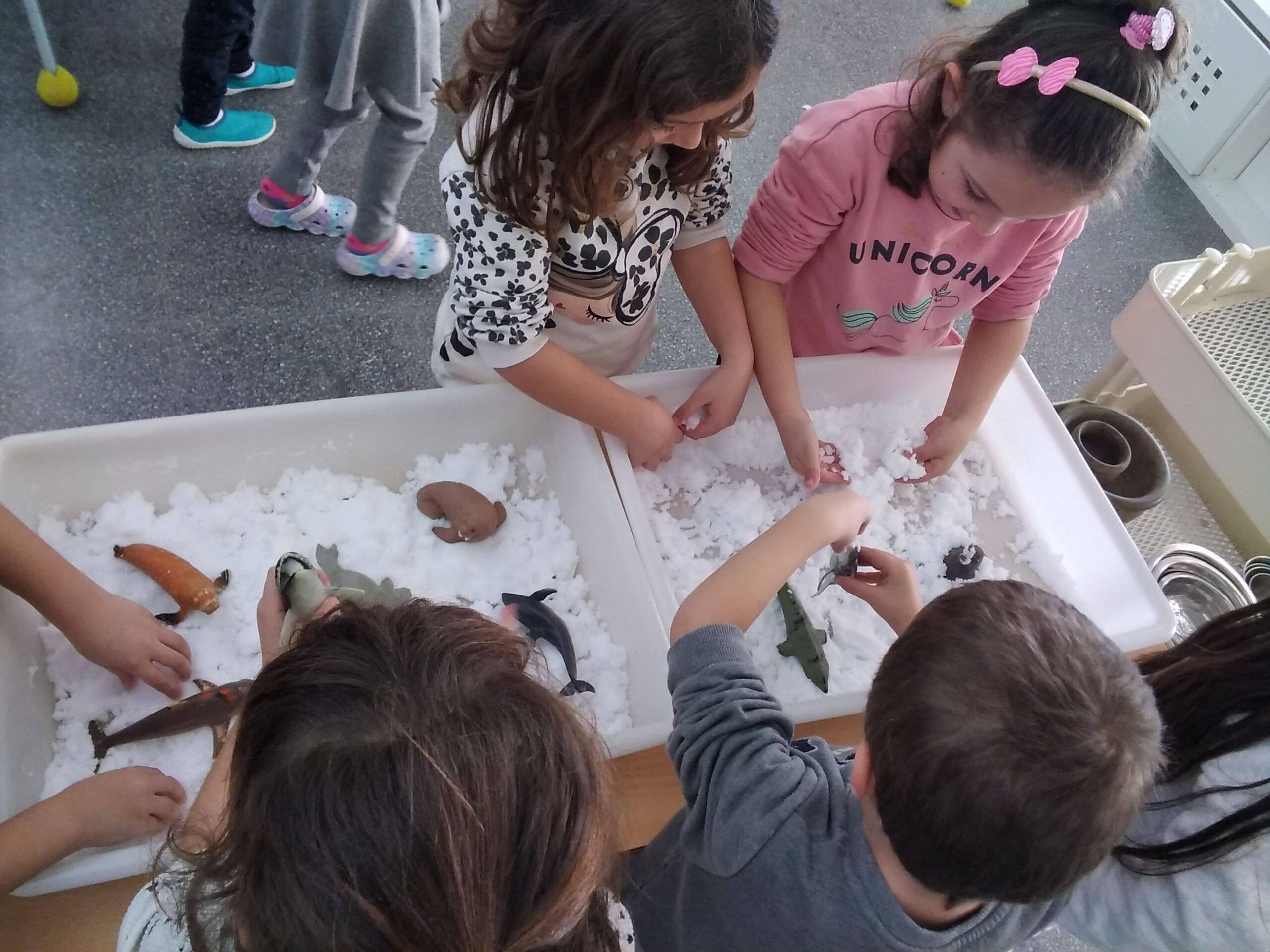 Els infants d’I5 estem treballant l’hivern. Amb els diferents microespais treballem les característiques més rellevants d’aquesta època de l’any com és la neu i els animals que hi viuen a l’espai sensorial, els seus colors més característics tot convertint-nos en artistes, els flocs de neu que ens permeten treballar la motricitat fina, amb un material molt atractiu com són unes pedres amb paraules i dibuixos que han de relacionar i fent ús d’uns story cubs on els infants tiren el dau i escriuen la paraula o una frase d’aquella imatge que els ha sortit. I, per reforçar el vocabulari treballat, també hem jugat al bingo, un bingo molt especial on totes les imatges són de l’hivern.