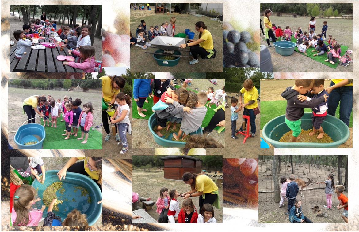 Els nens i les nenes d’infantil van anar d’excursió al Xaragall a fer la verema. Vam aprendre moltes coses sobre el món del raïm i les monitores ens van ensenyar a recollir els gotims de raïm, la màquina de desrapar, la premsa, l’ampolla, els taps de suro… Nosaltres vam recollir el raïm, i el vam premsar amb els peus, estava molt fred i relliscava molt!!! Una mica més tard, ens van deixar provar un most molt bo i el nostre, el vam posar en una ampolla per endur-nos-el a la classe.