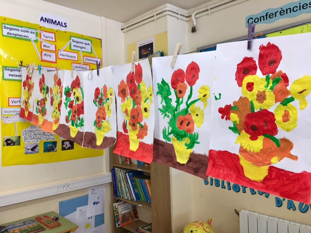 La setmana passada vam seguir treballant el nostre projecte d’Educació Artística, Van Gogh. Així, vam observar i analitzar un dels seus quadres més famosos: ELS GIRA-SOLS. Tenint en compte els colors que va utilitzar l’artista, entre d’altres coses, vam representar-lo nosaltres en una làmina, i el resultat va ser genial! Per acabar-ho d’arrodonir, el Pau