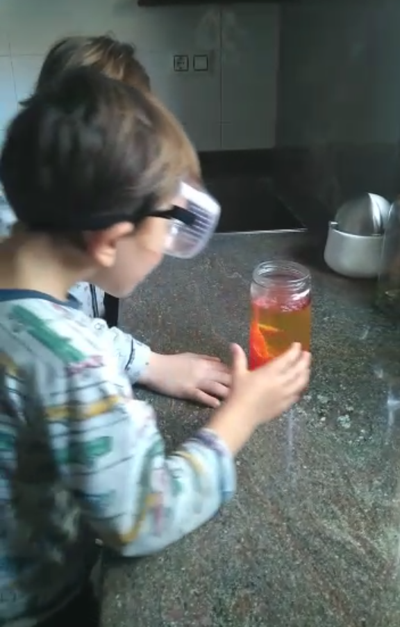 El JAN fa l’experiment de la lava. L’ONA i la BERTA experimenten amb pasta i arròs.