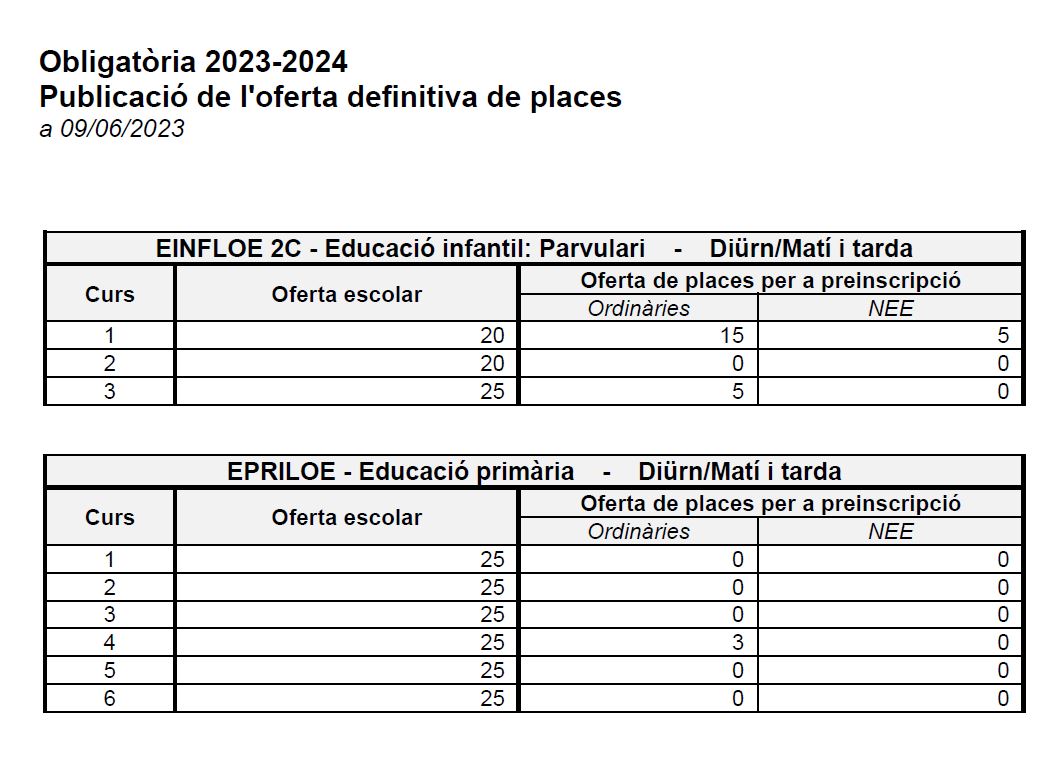 Oferta definitiva de places curs 23-24 Feu un comentari / Per Escola Montserrat / 12 de juny de 2023 / General Portada Portes Obertes/ Pinzellades MONT_OFERTA_DEF