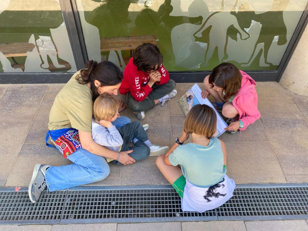 Petits: Compartim lectura al pati amb els grups de Mitjans