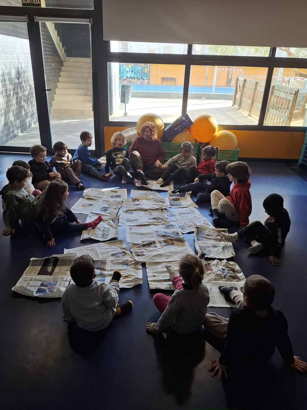 La celebració ha continuat amb una divertida festa de confeti feta també amb paper de diari, omplint l’espai de rialles i moviment. Finalment, després de tanta activitat i emoció, han gaudit d’un moment de calma, estirats a terra, deixant-se portar per la relaxació fins a adormir-se suaument. Ha estat una jornada plena d’aprenentatges, diversió i descobertes compartides.
